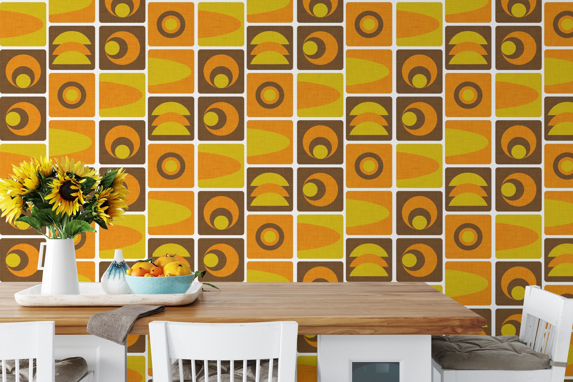 These vibrant 70s Cube Geo Brown Wallpaper will help you create the perfect room atmosphere. Shop Bath Room today and immerse yourself in our gallery of stylish wallpaper designs!