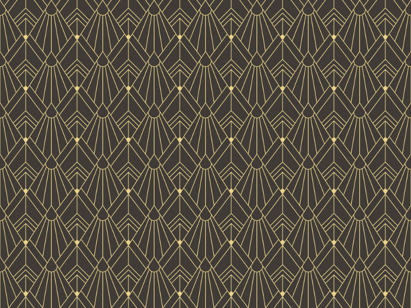 This elegant art deco wallpaper features a seamless pattern that harkens back to the sophistication of the 1920s and 1930s. The design boasts a series of geometric shapes, creating a mesmerizing interplay of lines and angles that evoke the glamour of a bygone era. The abstract wallpaper showcases a striking contrast of gold lines on a deep black background, making it a bold statement piece for any room. The repetitive tile wallpaper pattern ensures continuity when applied to larger areas, perfect for creating a feature wall that commands attention. Whether adorning the walls of a contemporary living room or adding a touch of retro flair to a dining area, this art deco-inspired wallpaper is sure to captivate and impress with its timeless elegance and modern twist.