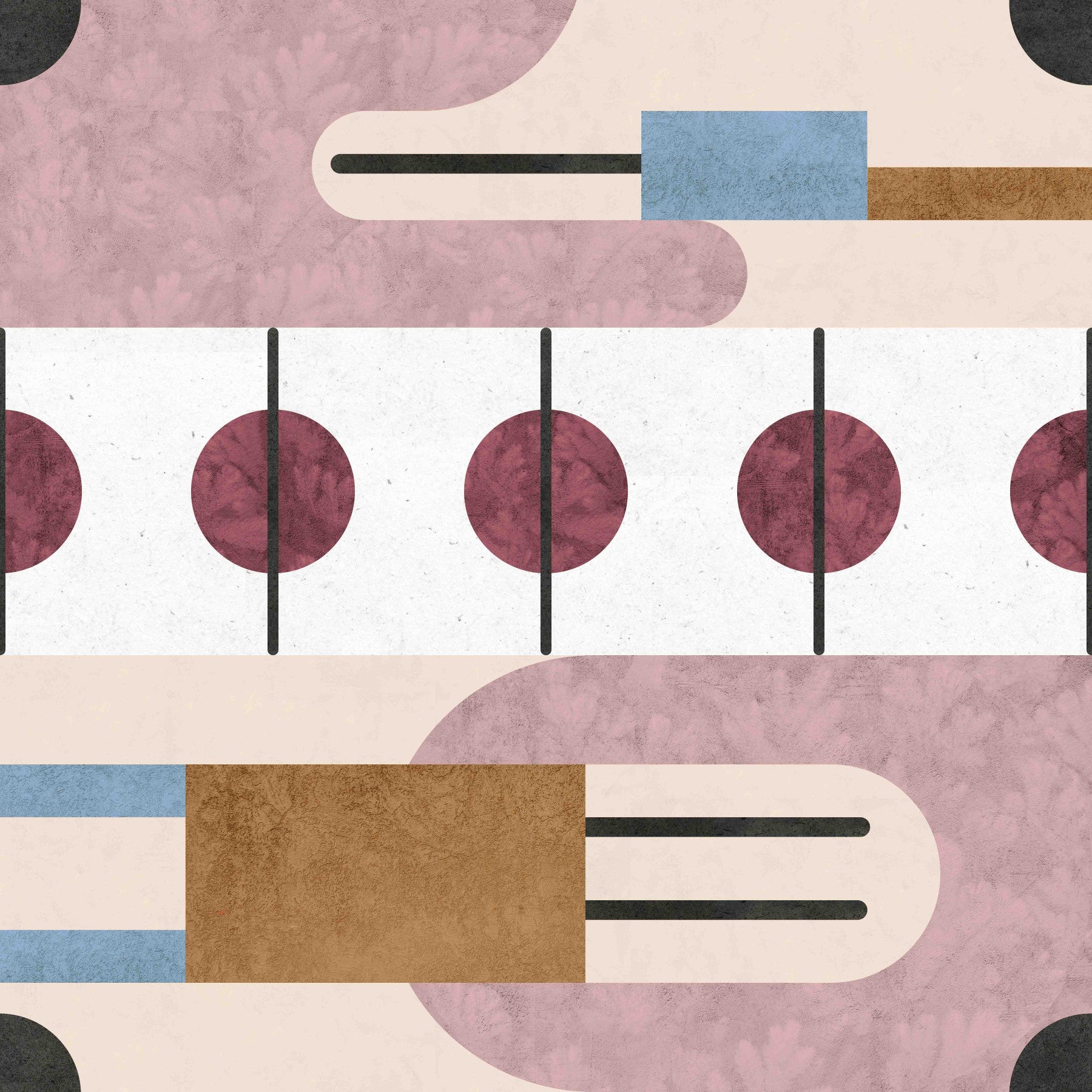Immerse yourself in the tranquility of this abstract wallpaper, a symphony of geometric forms rendered in a calming palette of earth tones. Dusty rose, beige, and warm browns interplay with light blue, creating a visually soothing and sophisticated design. The textured surfaces of the shapes add depth and tactile intrigue, enhancing the wallpaper's appeal. This wallpaper evokes a sense of balance and harmony, making it a perfect addition to any room seeking a touch of minimalist elegance.