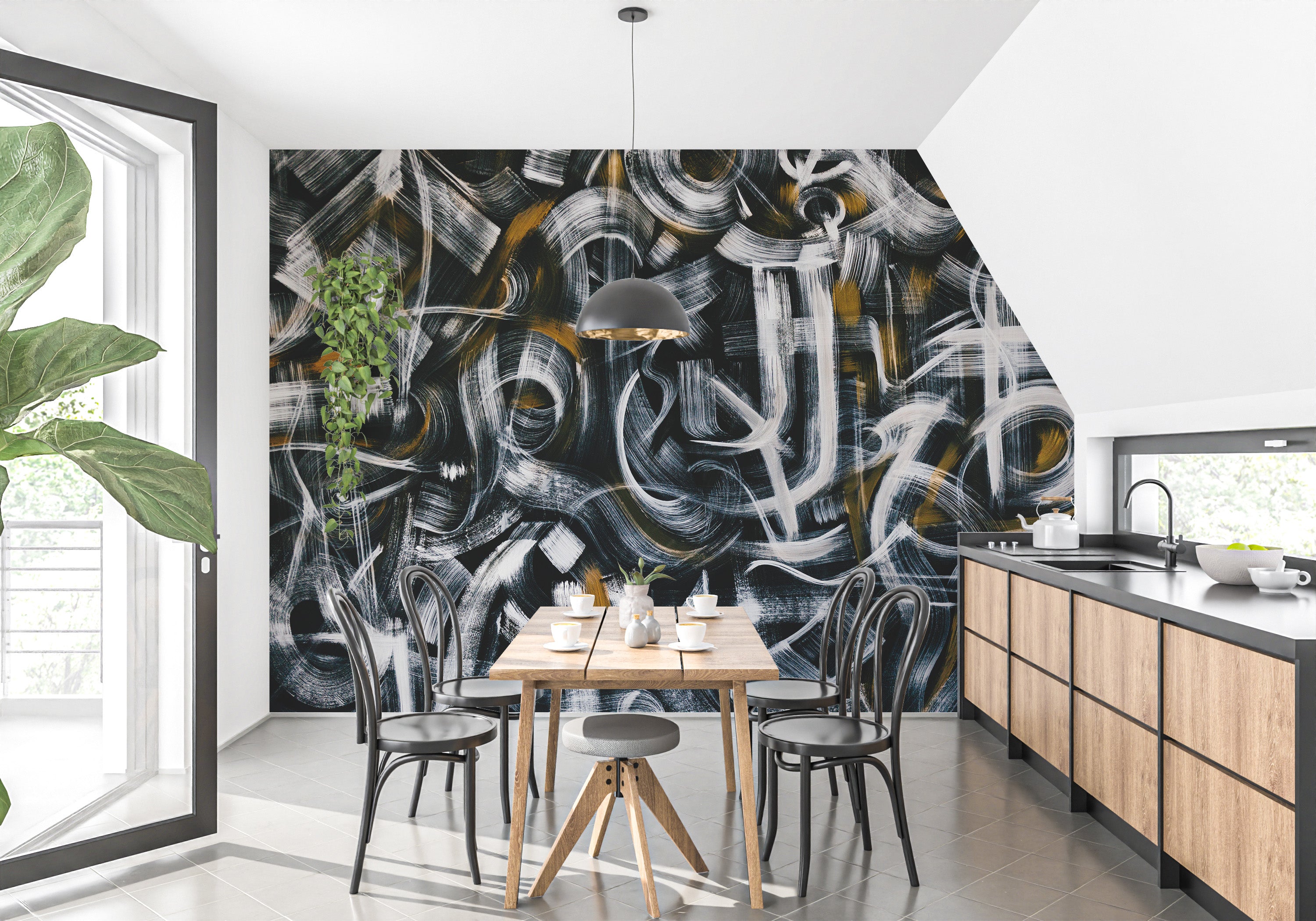 Artistic wallpaper with bold abstract graffiti strokes