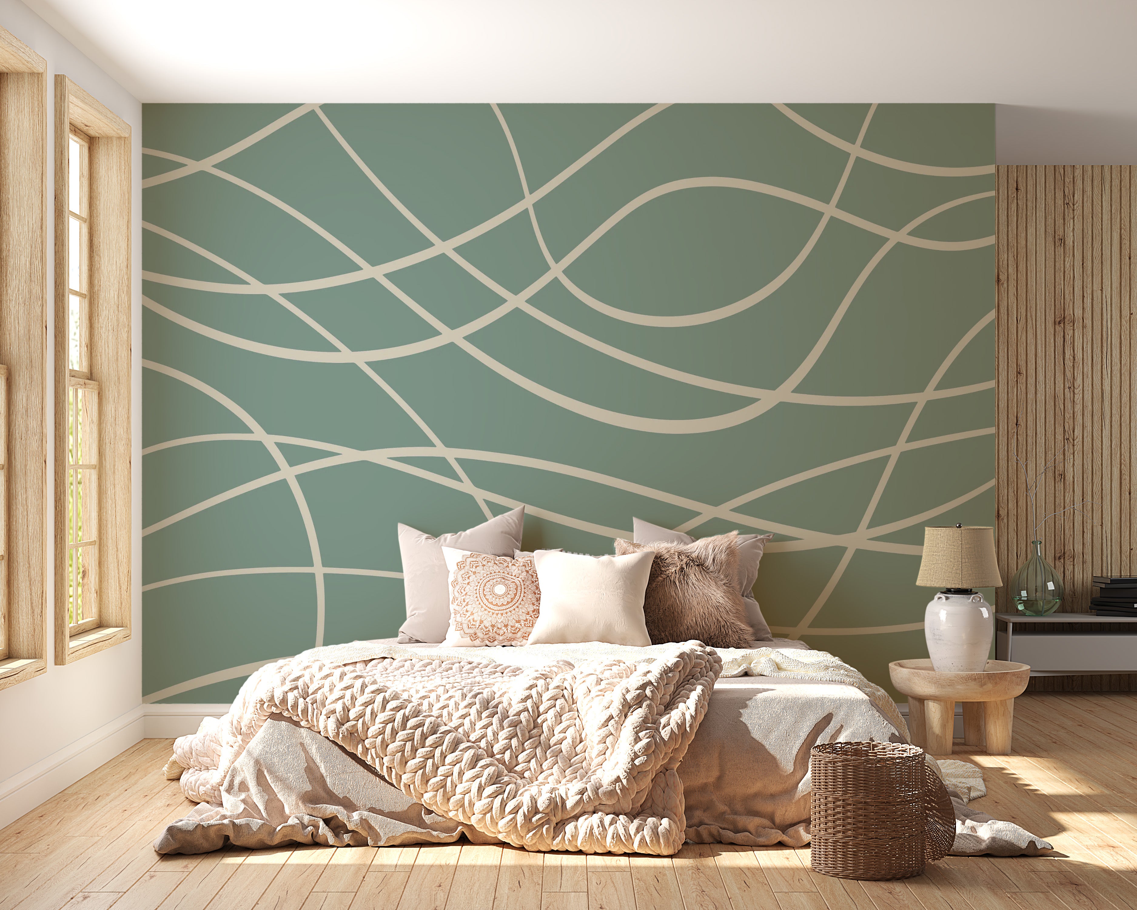 This abstract green line wallpaper mural is a striking addition to any room, combining modern aesthetics with a unique pattern. This mural offers a dynamic design featuring fluid, intertwining lines set against a calming green background. Perfect for adding a touch of contemporary style, this mural can create a focal point in your living room, bedroom, or office. Its intricate design captivates the eye, providing an engaging visual experience that enriches your interior. Upgrade your walls with this abstract mural and enjoy a stylish and chic atmosphere. Get yours today, and enjoy the compliments from your guests.