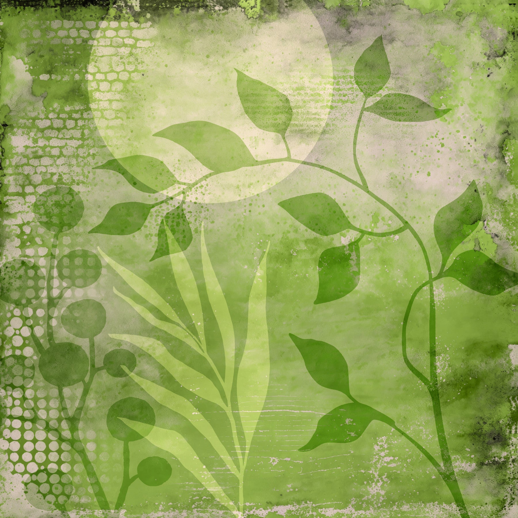 Abstract Greenery Mixed Media Art Wall Mural