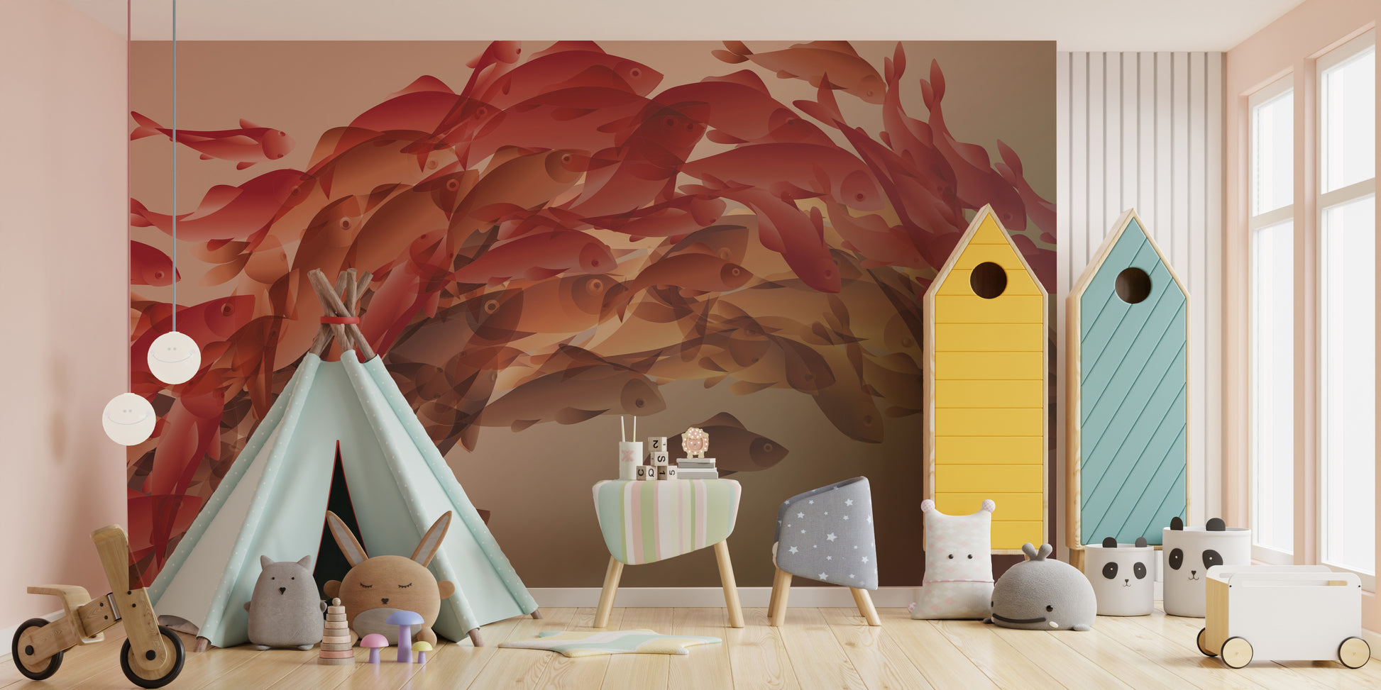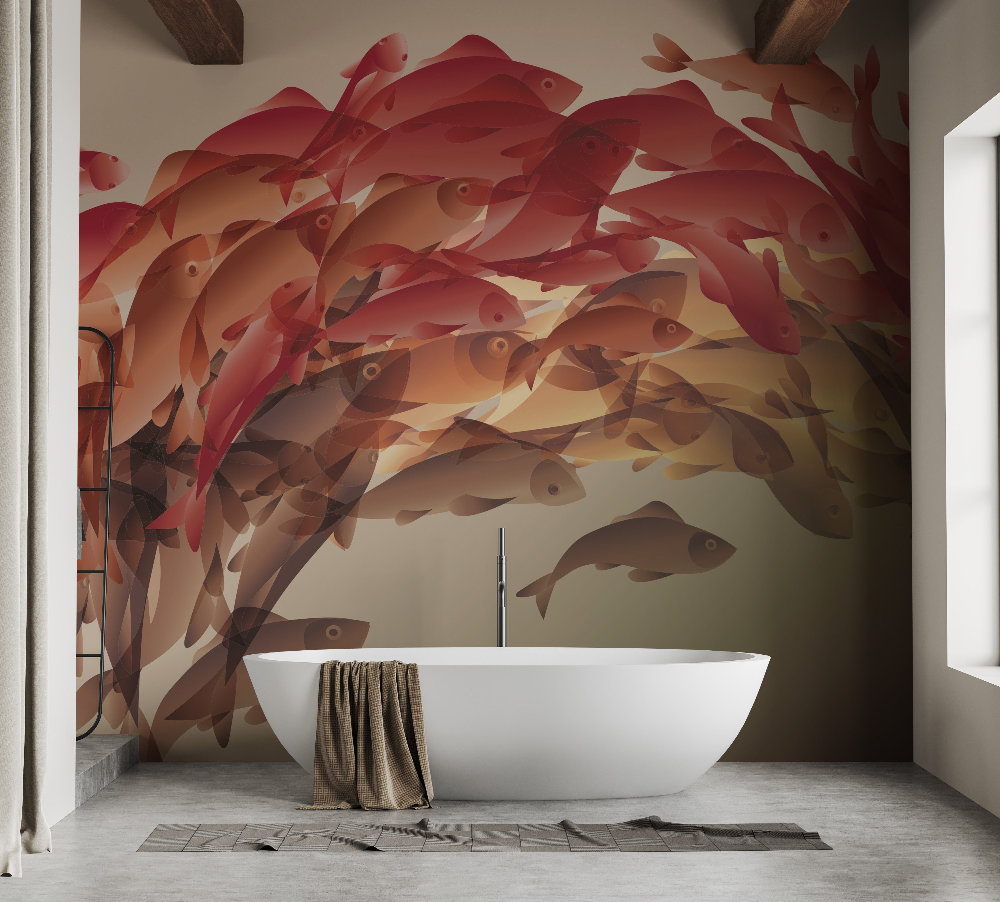Immerse yourself in the tranquil beauty of our Abstract Koi Fish Wallpaper Mural. This serene design captures the elegant movement of koi fish in an abstract style, blending vibrant colors with flowing shapes. Koi fish are known for their graceful beauty and calming presence. They are also considered a symbol of good fortune and are often depicted in art with various symbols of prosperity, such as gold coins or lotus flowers. Koi fish are also associated with love and romance. Perfect for creating a peaceful and reflective space, this abstract wallpaper invites calm and contemplation. Ideal for bedrooms, bathrooms, or meditation spaces, the soothing colors and graceful imagery turn any room into a tranquil pond, where the stress of the day drifts away with the gentle current.