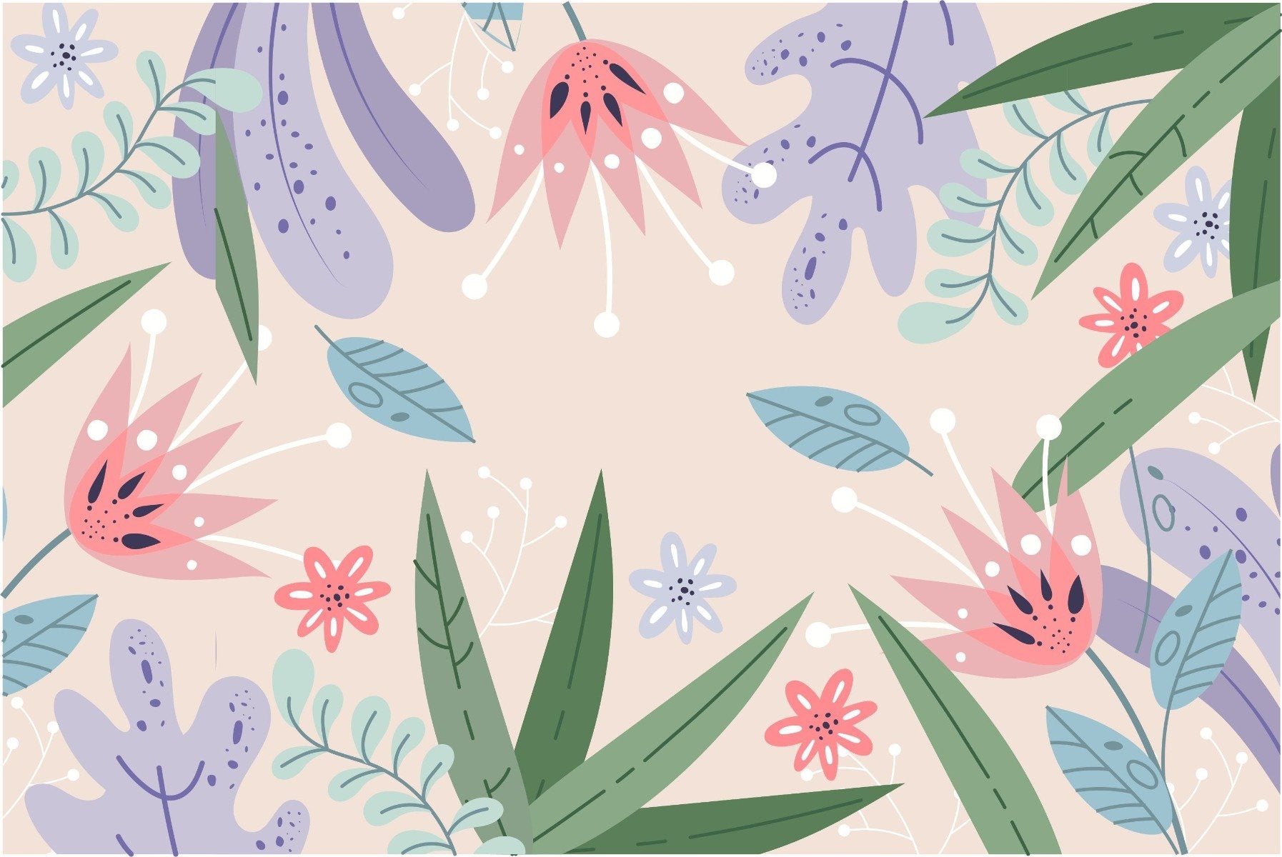 Artistic Abstract Leaves Flowers Wallpaper Mural