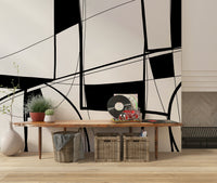 Transform your space with this bold, graphic wallpaper for walls. The abstract design features strong, clean lines and solid shapes in a striking black and white palette. This modern pattern adds an instant focal point to any room. It brings a sophisticated, minimalist style that complements both contemporary and industrial interiors. Ideal for living rooms, bedrooms, or offices, this wallpaper creates an impactful backdrop. Its contrasting colours and simple geometry work well to amplify natural light and add visual interest without overwhelming the space. This design offers a versatile way to enhance your décor.
