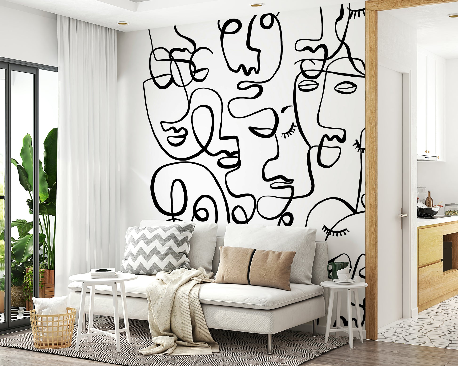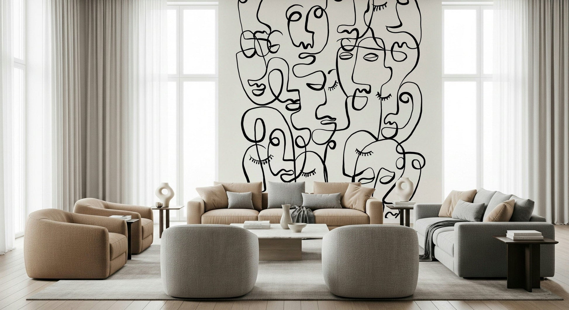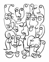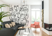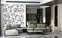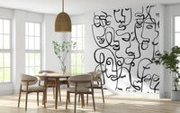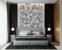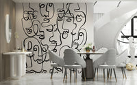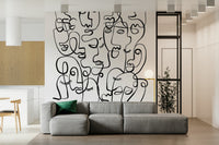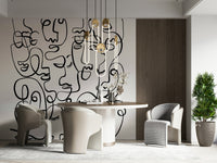 Infuse character into your interior with this striking face wallpaper. This dramatic wallpaper for walls features abstract portraits created from continuous, swirling lines. The stark contrast of black lines on a white backdrop produces a striking visual effect, ideal for modern spaces. The design makes a statement in any room, from an urban living room to a trendy teen bedroom. Its graphic style provides a unique focal point, enhances depth, and complements a range of decorating styles. Transform a simple space into a modern art installation with this bold and captivating design.