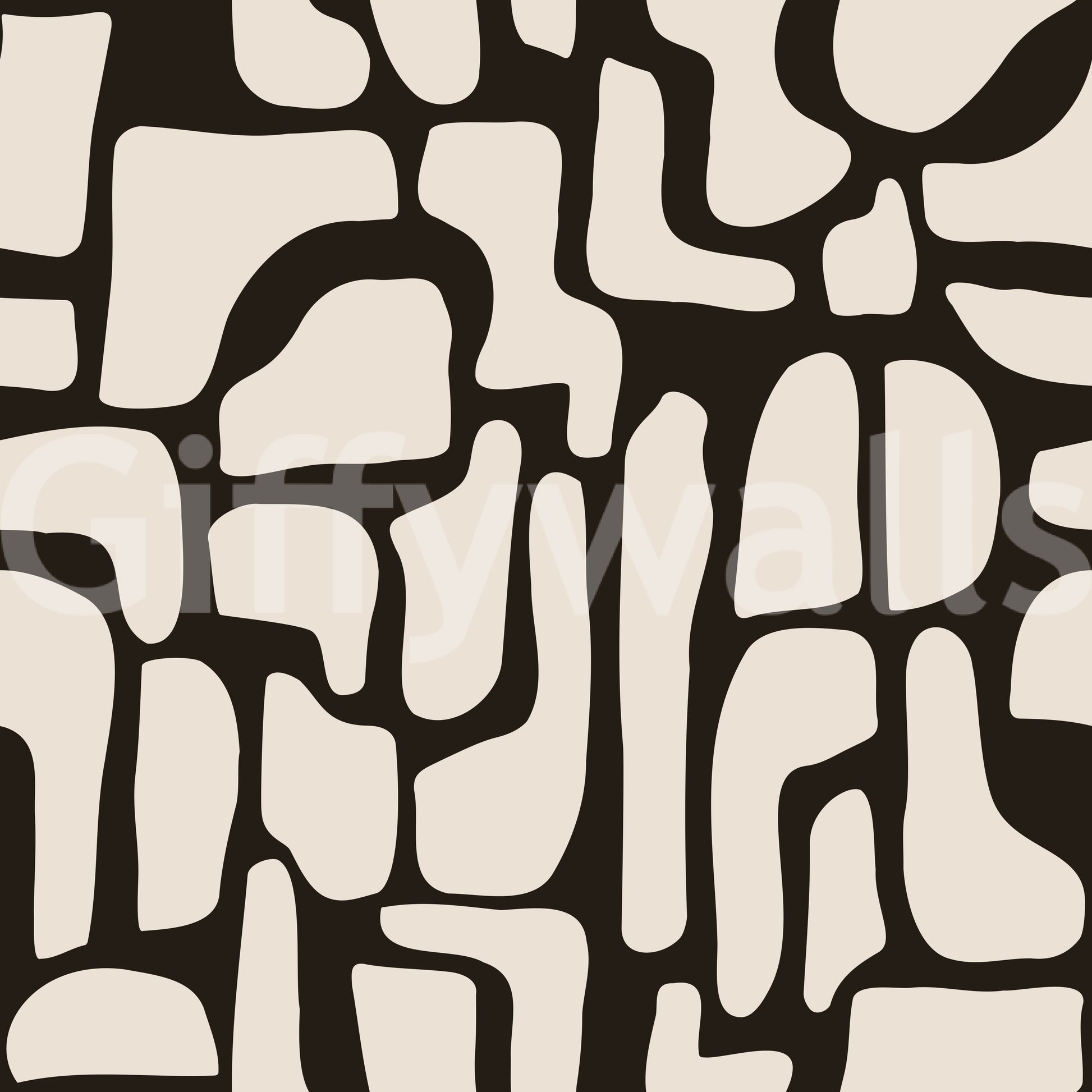 This wallpaper for walls displays a striking arrangement of abstract shapes. The design features soft, organic forms in a creamy beige against a dark brown backdrop. The neutral palette works well in various spaces. The balanced layout and simple colors make it perfect for a sophisticated living room or a calm bedroom, complementing modern interiors with a touch of quiet drama. It will add an interesting accent to any room in your home.