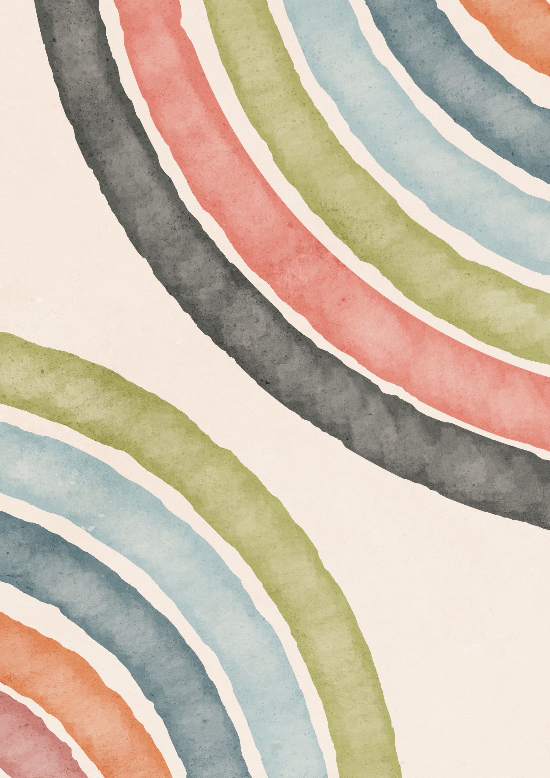 Experience the visual serenity of this abstract wallpaper. The design showcases gracefully curved watercolor arcs in a palette of soft, earthy tones. The interplay of muted pinks, greens, greys, and browns creates a sense of gentle movement and visual harmony. The slightly textured background adds depth and complexity, enhancing the overall artistic feel. This wallpaper is perfect for creating a calming and sophisticated ambiance in any room, from bedrooms to offices, infusing a touch of understated elegance into your space. Its versatility allows it to complement diverse design styles.