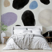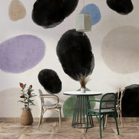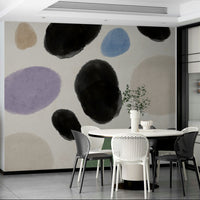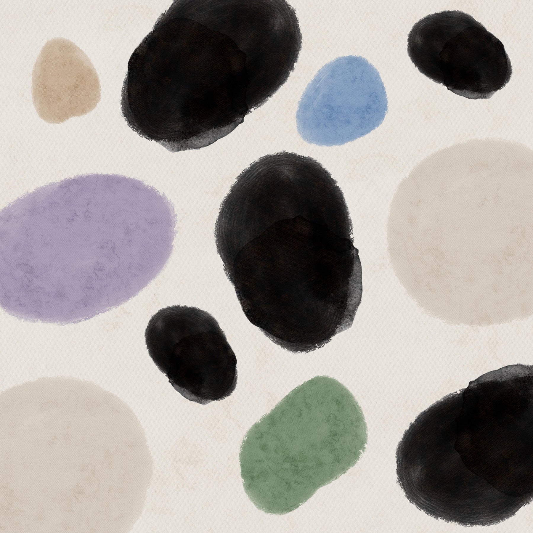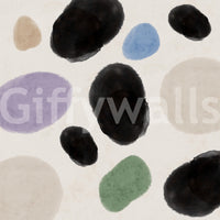 Experience tranquility with this 'Abstract Watercolor Dots' wallpaper. Soft, muted tones of beige, lavender, sage green, and deep blacks create a serene and sophisticated atmosphere. The organic shapes of the watercolor dots, reminiscent of pebbles or stones, evoke a sense of calm and natural beauty. This minimalist yet visually engaging design brings a touch of modern art to your screen, offering a relaxing and stylish backdrop for your digital devices. The subtle texture mimics the feel of watercolor paper, enhancing the overall artistic appeal. Perfect for those seeking a calming and stylish digital escape.