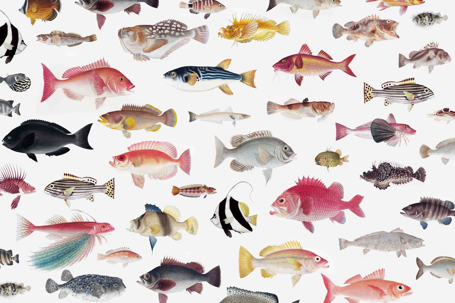 Dive into the vibrant world of 'Acquarium,' a captivating wallpaper that showcases a diverse collection of exquisitely illustrated fish. Each species, from the strikingly striped to the subtly shaded, is rendered with meticulous detail, evoking the charm of vintage natural history illustrations. The composition brings to life the lively energy of an underwater ecosystem, offering a glimpse into the ocean's hidden beauty. Perfect for adding a touch of aquatic serenity and artistic flair to any space, 'Acquarium' transforms your screen into a mesmerizing underwater gallery.