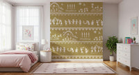 This mural fits well in living rooms, cultural spaces, studios, cafés, or work environments that appreciate heritage-inspired decor. The artwork does not rely on bold colors but instead uses contrast and form to convey everyday life and shared traditions. Each element flows naturally into the next, creating a continuous story across the wall.