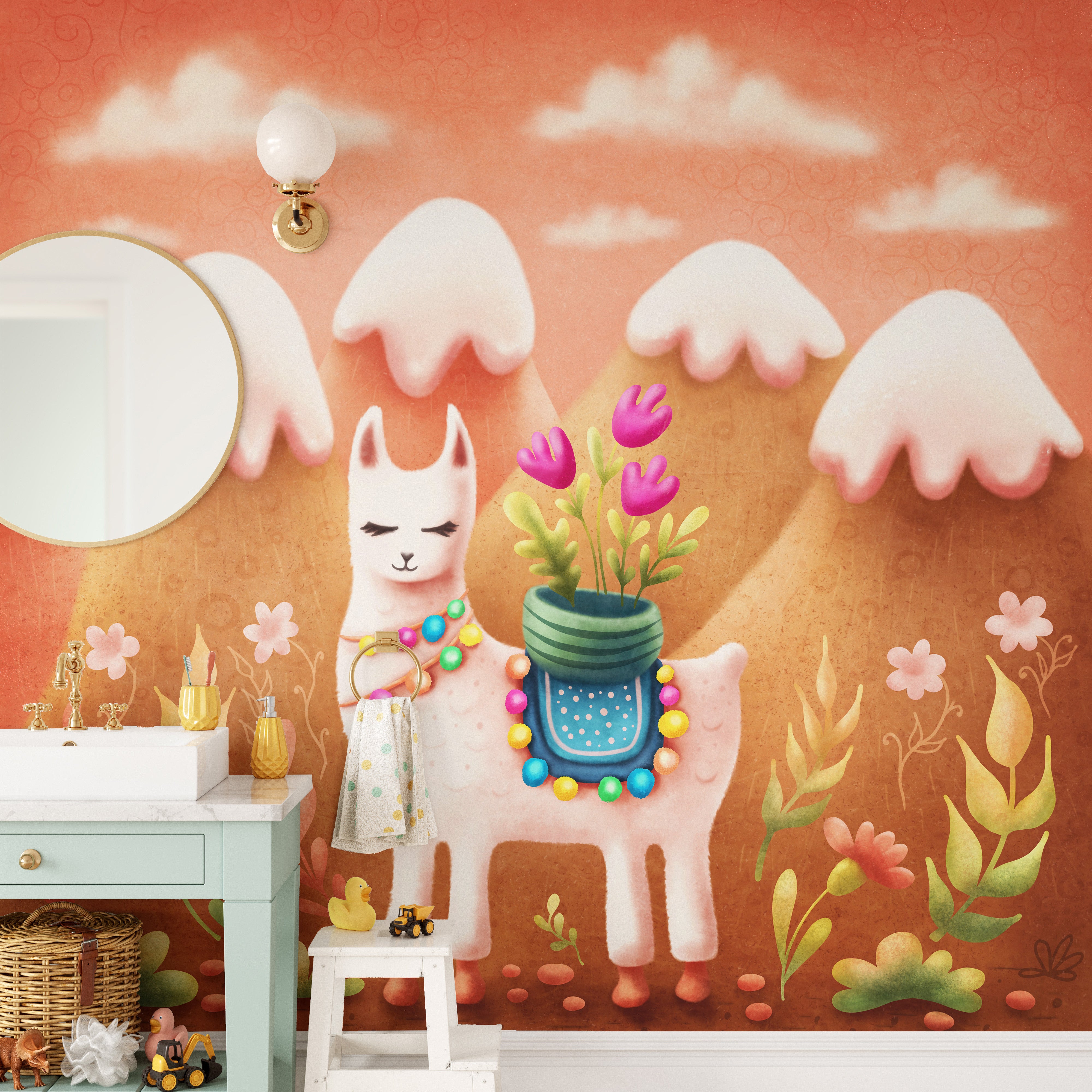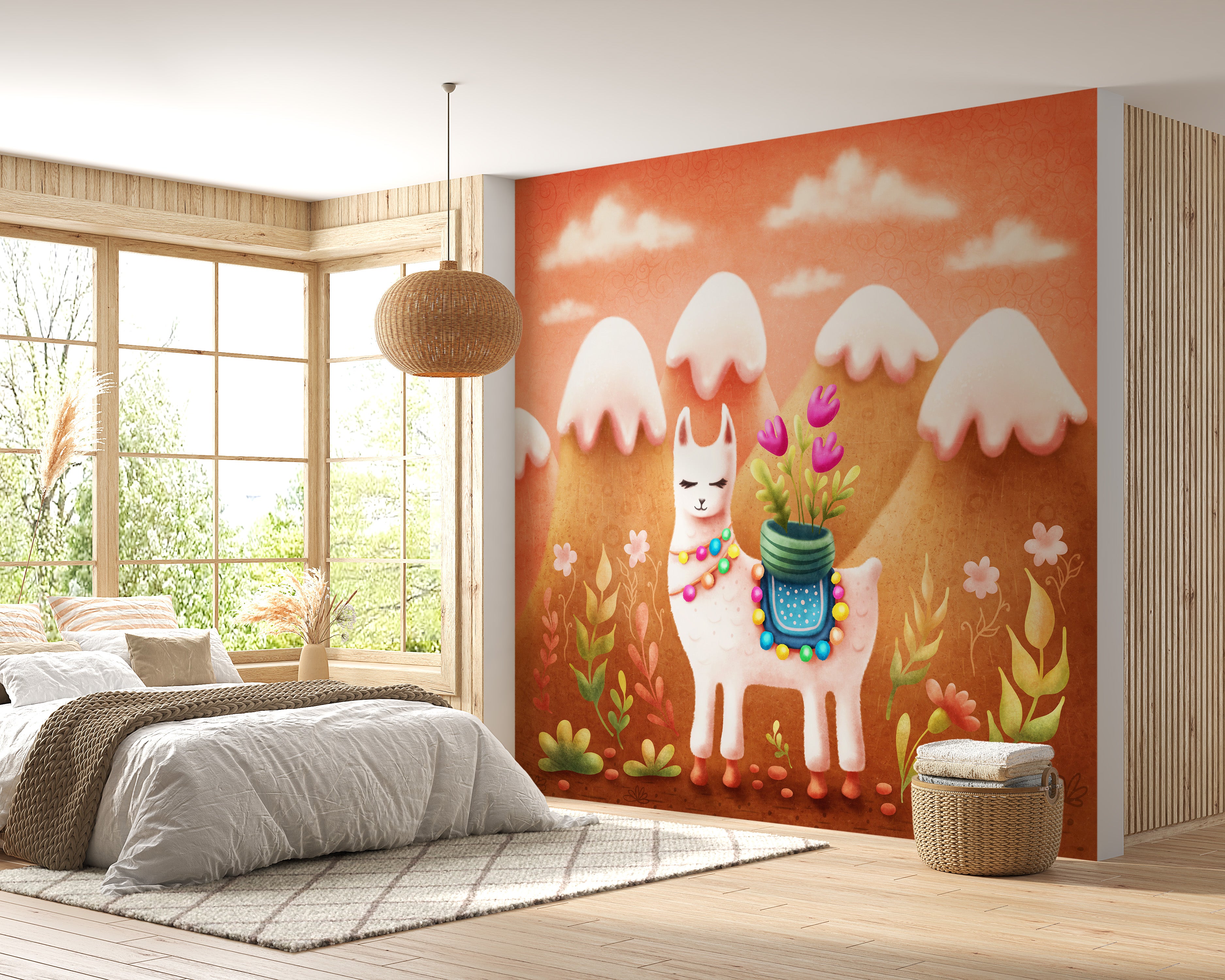 Wander Lama Dusty Mountains Wallpaper Mural - Giffywalls