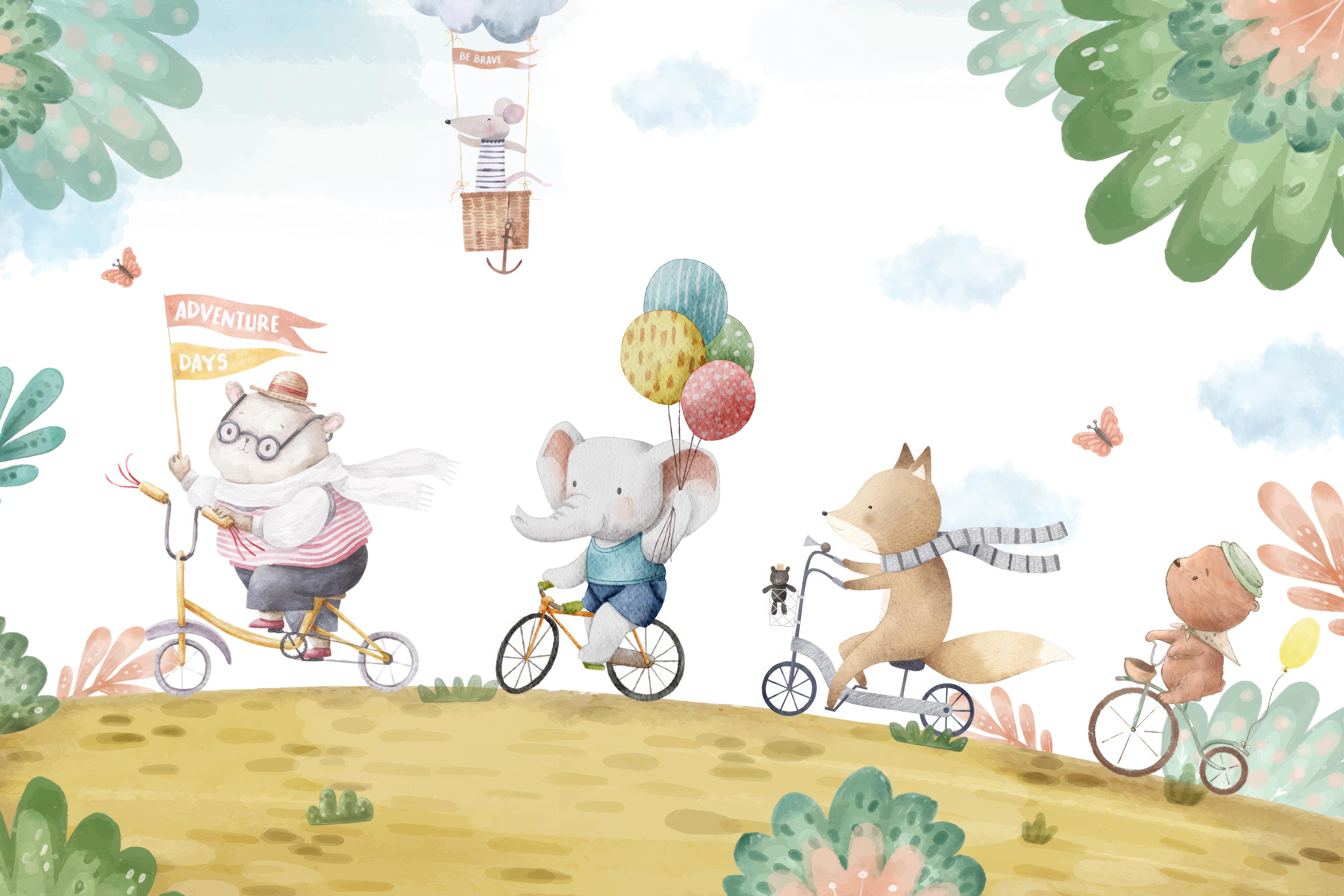 Transform your child’s room into a magical world of childlike wonder with the Bicycle Adventures Kids Room Wallpaper. Imagine adorable animal buddies riding bicycles upon grassy knolls, waving balloons behind them, and merrily blowing a happy breeze behind them. This fantasy design does with a necessarily storybook enchantment to nurseries, playrooms, or bedrooms, opening up endless fantasy. With its colorful appearance and entertaining characters, it makes for an uplifting space in which dreams can come true. Easy to install, and built from durable materials, this wallpaper guarantees enjoyment (and no hassle). Just let your toddler pedal into a land of creativity and happiness with this whimsical piece for their space!