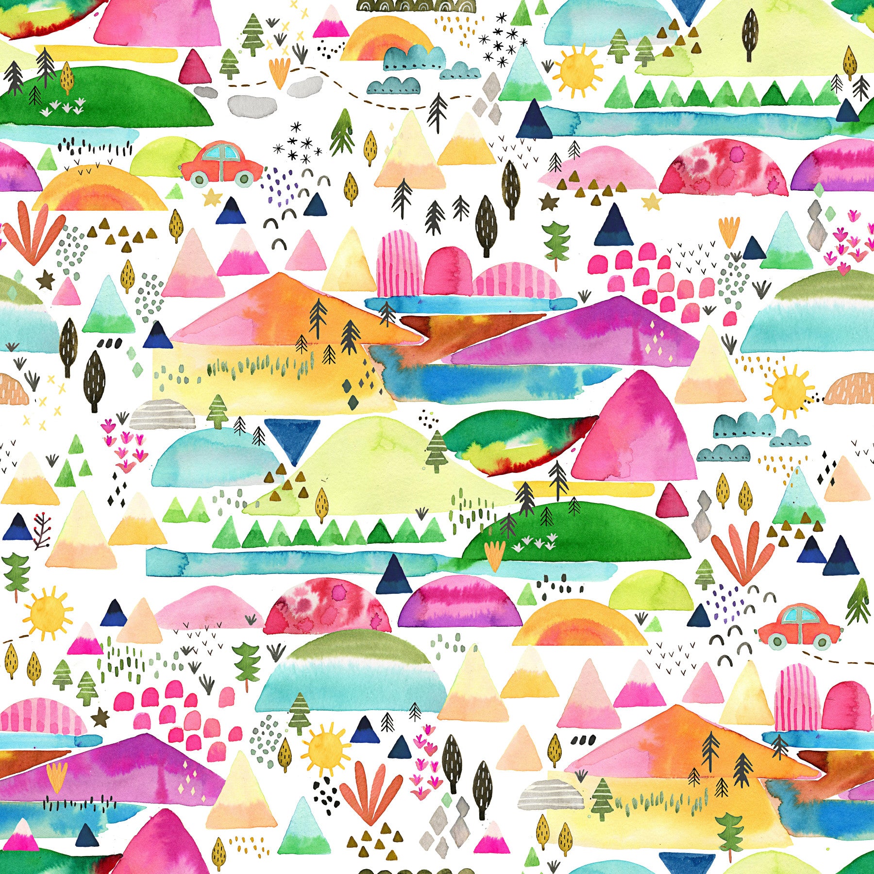 Embark on a whimsical journey with 'Adventure Mountain Kids'! This vibrant watercolor wallpaper bursts with playful energy, depicting a fantastical landscape of colorful, geometric mountains, charming little cars, and friendly trees. The bright hues and childlike simplicity create a joyful and imaginative atmosphere, perfect for adding a touch of adventurous spirit to any digital device. Let your screen become a canvas for endless exploration and happy wanderlust, inspired by this fun and unique design.