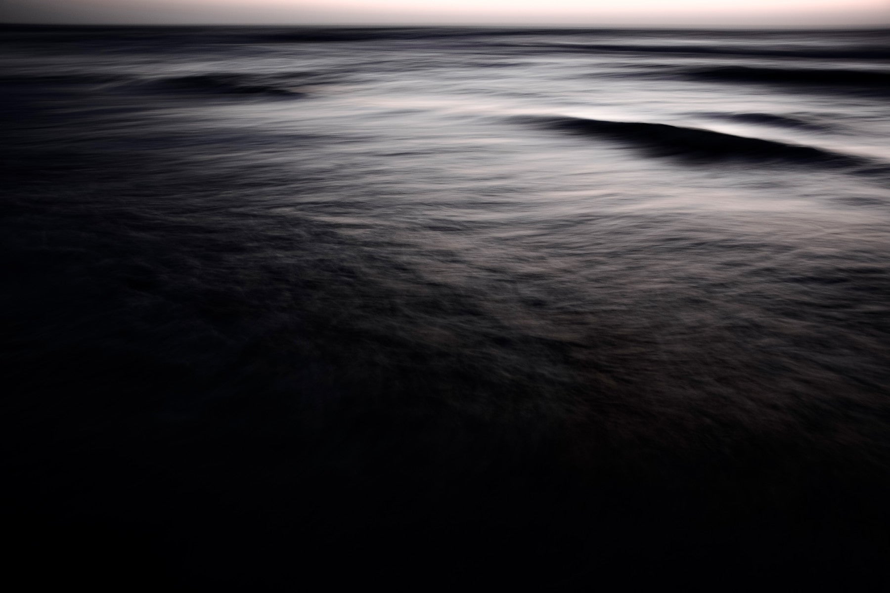Immerse yourself in the tranquil depths of After the Sun Has Set III a captivating wallpaper that captures the ocean's essence in the twilight hours. The image depicts the restless sea, its surface blurred into ethereal streaks of silvery grey and deep indigo, suggesting the endless movement of water and the absence of sun. This artwork evokes a sense of calm introspection, inviting you to lose yourself in the subtle interplay of light and shadow on the water's surface. The darkening gradient that envelops the lower portion of the image adds to the mystery, pulling the viewer into the quiet drama of the post-sunset seascape. Perfect for those seeking a peaceful and evocative digital backdrop that whispers of the ocean's secrets.