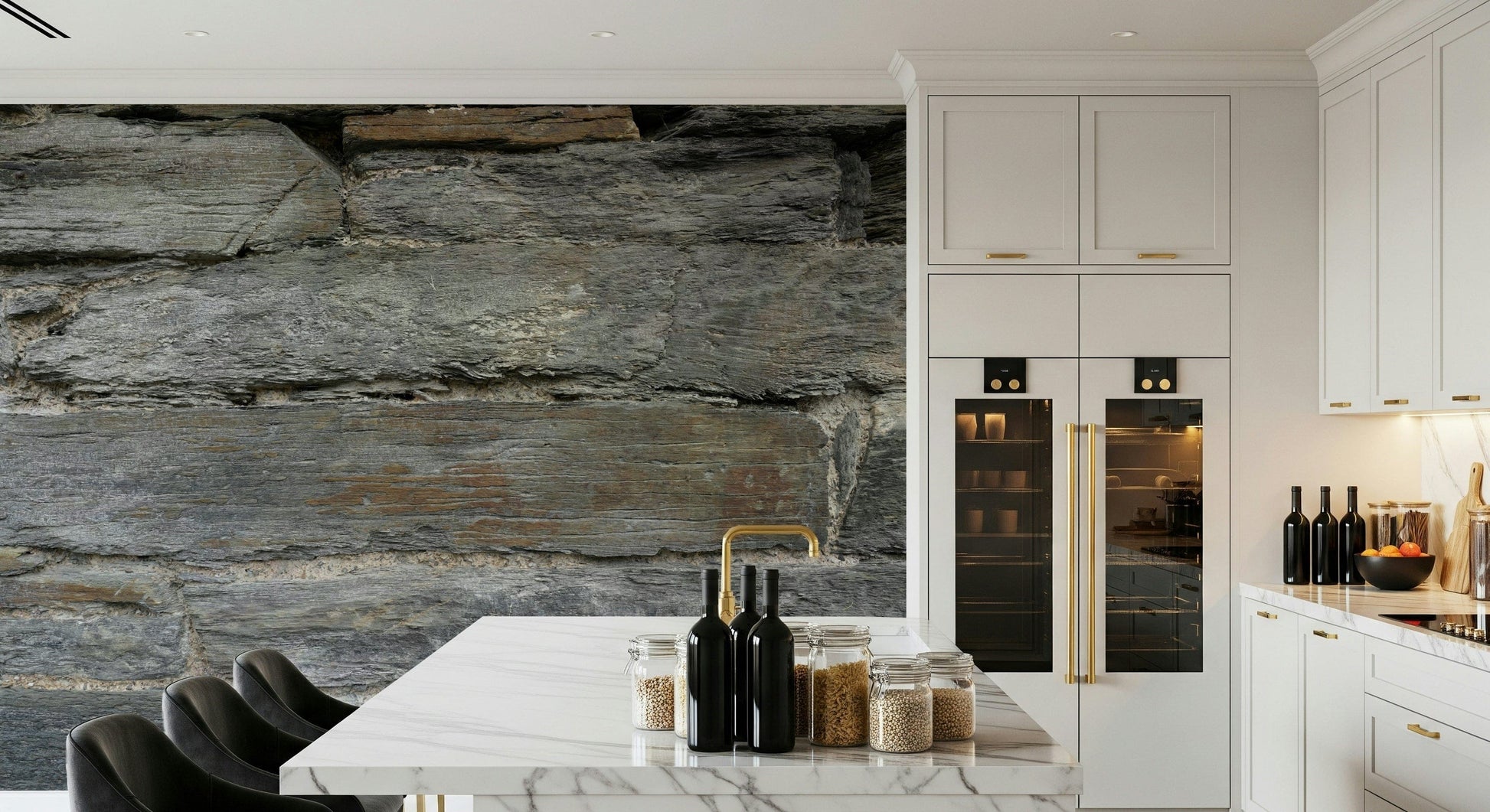 Bring a touch of rustic charm to your interior with this stone wall design. The grey palette is offset by subtle brown undertones, creating a unique textured look. This wallpaper for walls fits perfectly in spaces like living rooms, hallways, or studies. It evokes a sense of warmth and earthiness and lends character to plain interiors. Add style to your home or office with this design.