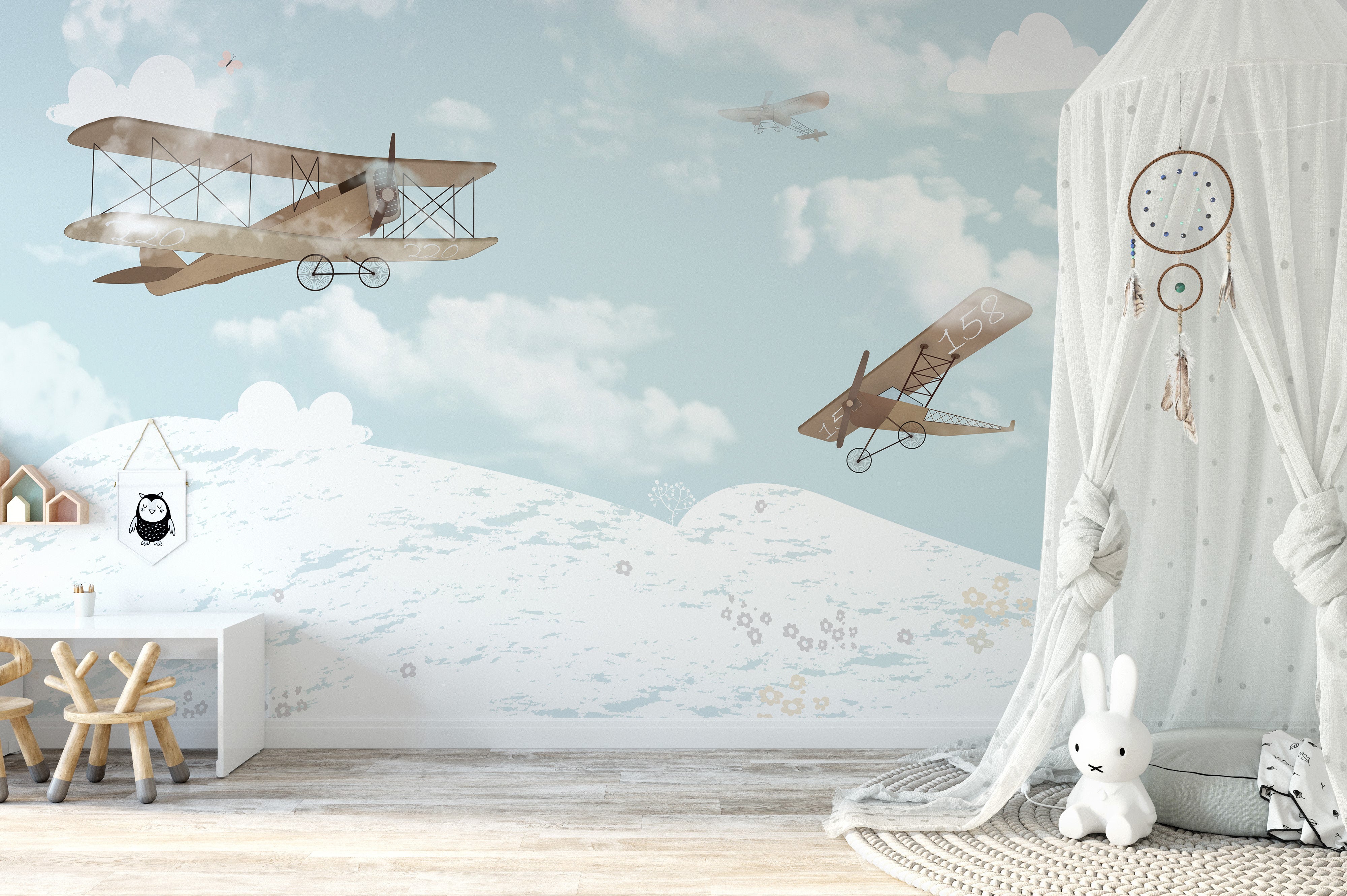 Flying Airplanes in the Sky mural wallpaper