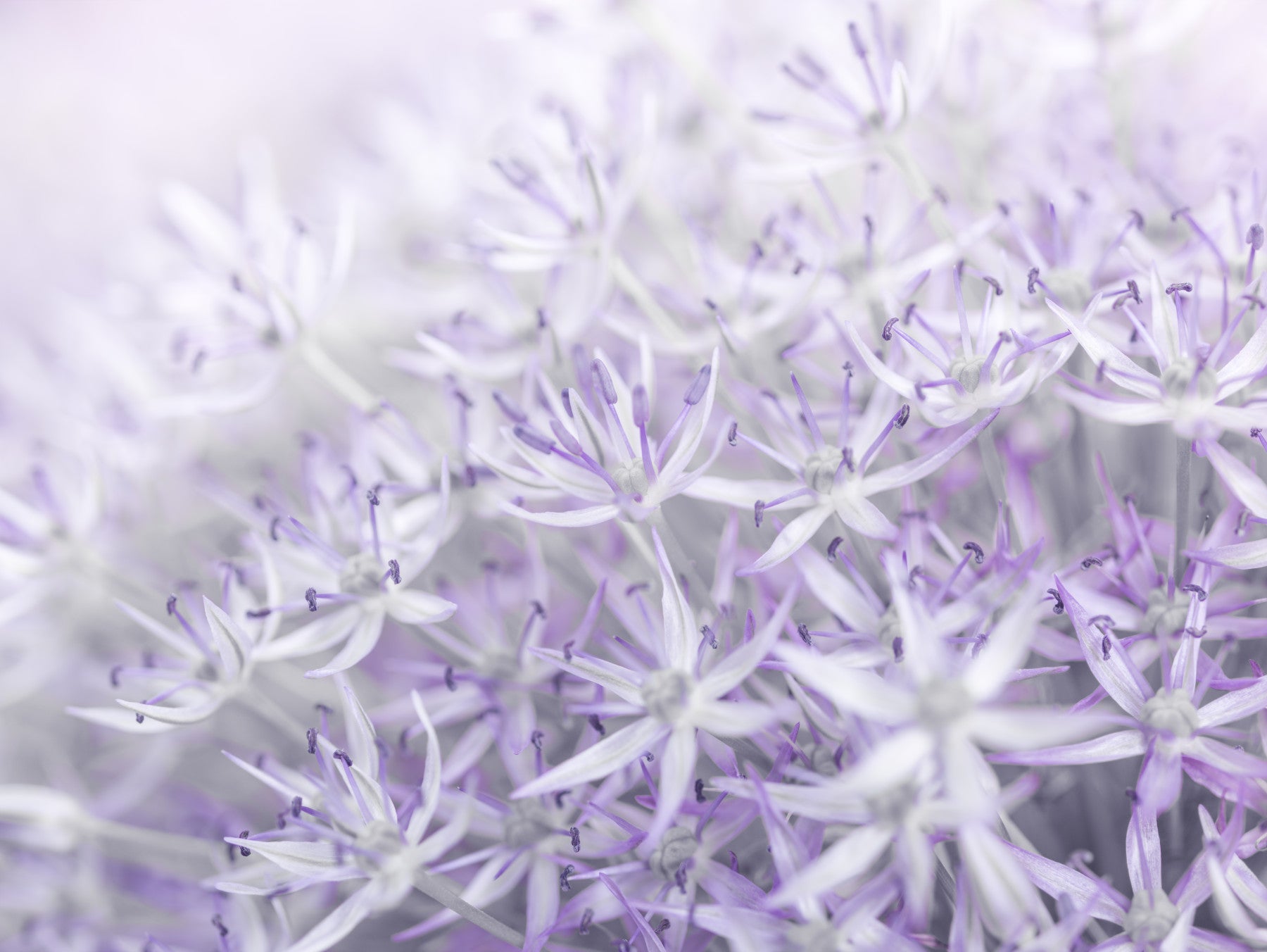 Allium flower wallpaper in soothing lavender and white hues