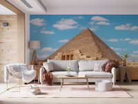Transform any room with this captivating wallpaper for walls featuring the majestic pyramids against a bright blue sky. The warm, earthy tones of the stone contrast beautifully with the cool sky, creating a timeless image. This design adds a sense of history and adventure to living rooms, home offices, or studies. The detailed texture brings depth to any space, making it feel more immersive and expansive. Let this wallpaper transport you to an ancient world every day.