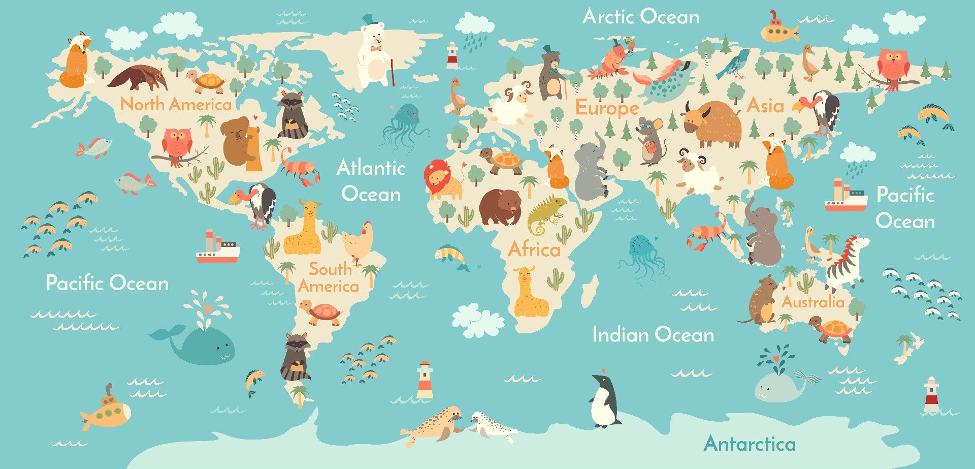 Kids Room World Map Wallpaper Mural - Giffywalls