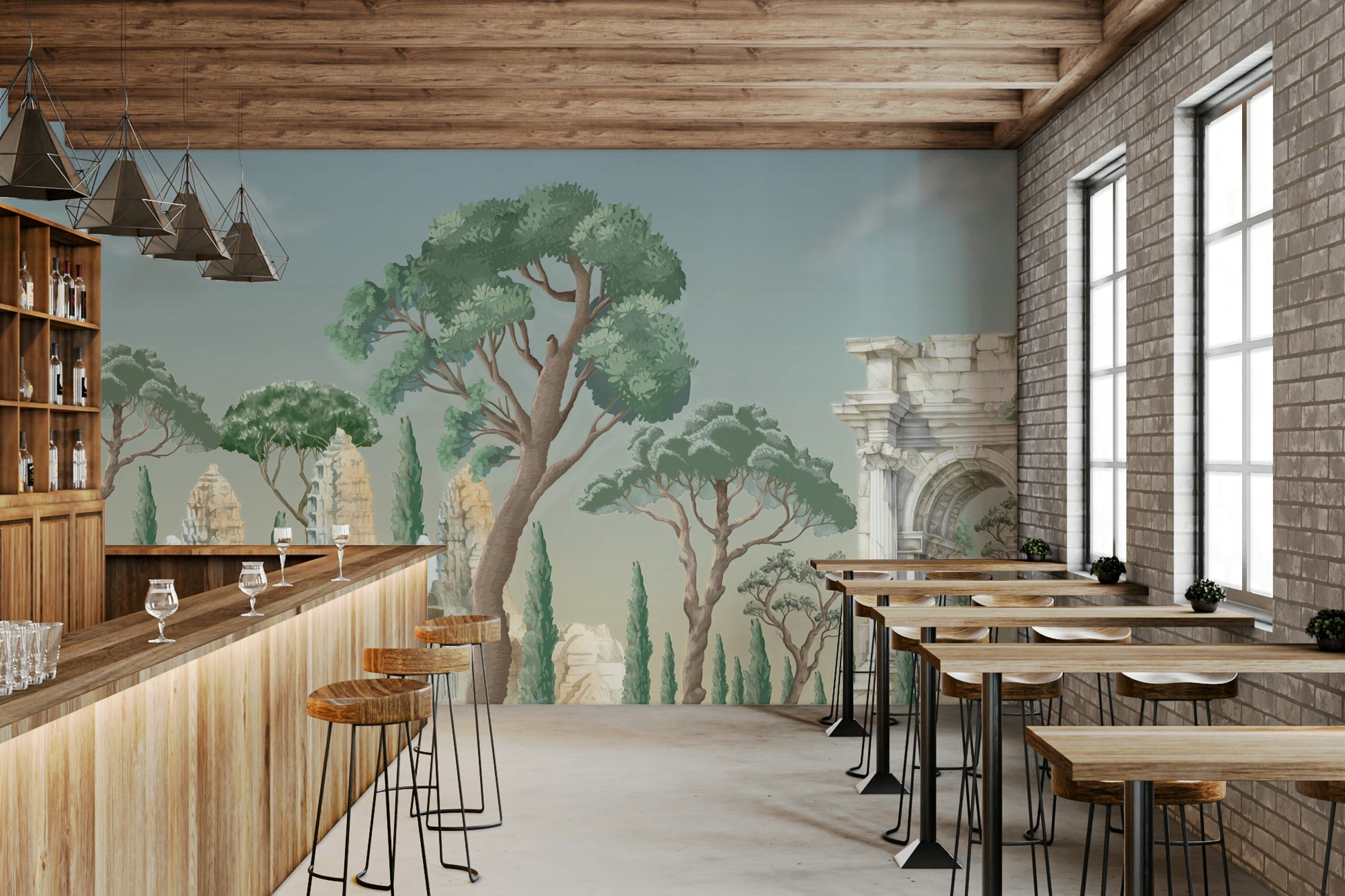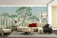 Step into a world of ancient wonder with the Antique Arch & Temple Wallpaper Mural. This exquisite design brings classical architecture to life, featuring majestic stone arches, timeworn temples, and sculpted columns nestled among lush greenery and sky-kissed trees. The soft, painterly style evokes the romance of bygone eras, perfect for creating a refined, timeless ambiance in any room. Ideal for living spaces, studies, or hallways, this mural adds depth and a touch of historical grandeur to your walls. Let your home tell a story of ancient elegance and enduring beauty with this sophisticated wallpaper masterpiece.