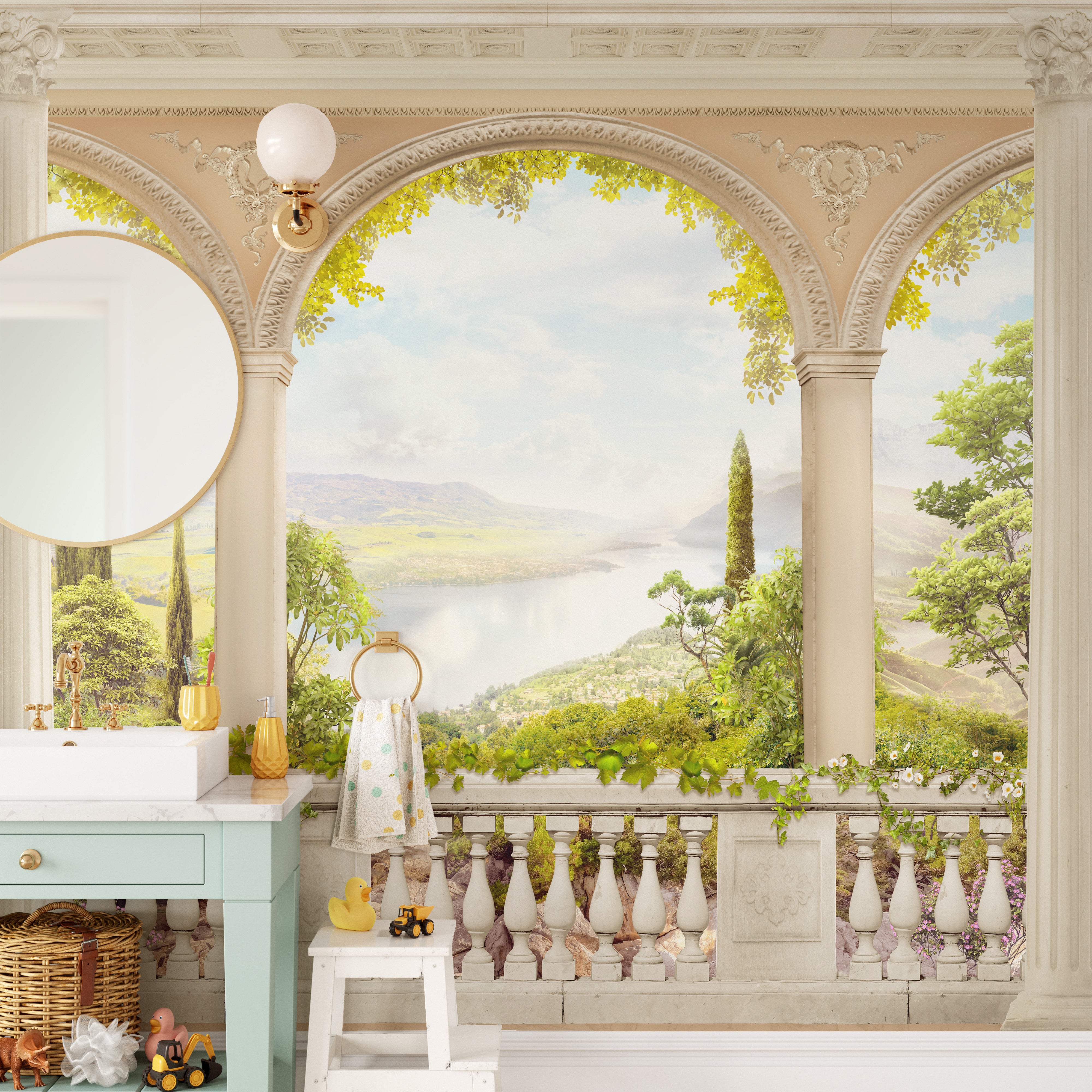 Discover a serene escape with our peace antique landscape balcony view mural wallpaper, an artistic ode to timeless landscapes. This exquisite design captures the essence of a tranquil, bygone era, inviting you to peer out from an ornate, antique balcony into a world of pastoral elegance. The landscape unfolds in layers of gentle hills, lush greenery, and age-old trees, all bathed in the soft light of a setting sun. This landscape wallpaper is a perfect blend of classic artistry and natural beauty, creating a peaceful backdrop that soothes the soul. The rich, detailed imagery invites contemplation and daydreaming, making it an ideal choice for spaces where calm and quietude are cherished. It's a celebration of nature's enduring beauty, framed through the lens of historical charm.