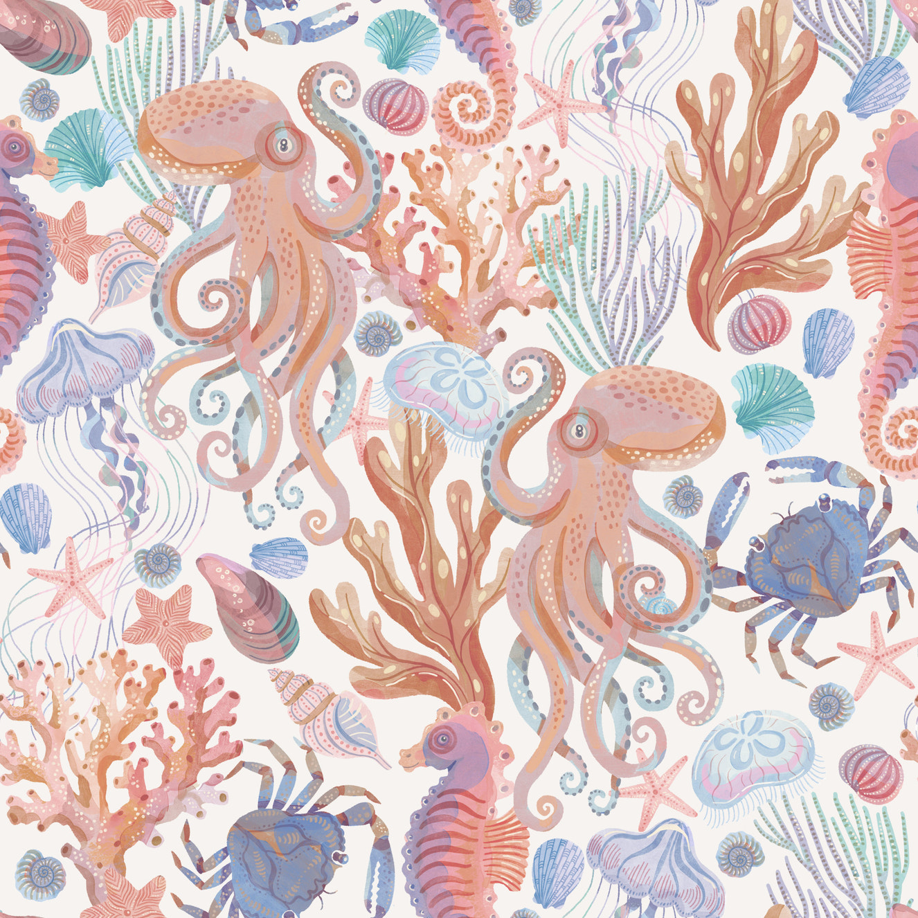 Marine-themed Aqua Gardens wallpaper with coral details.