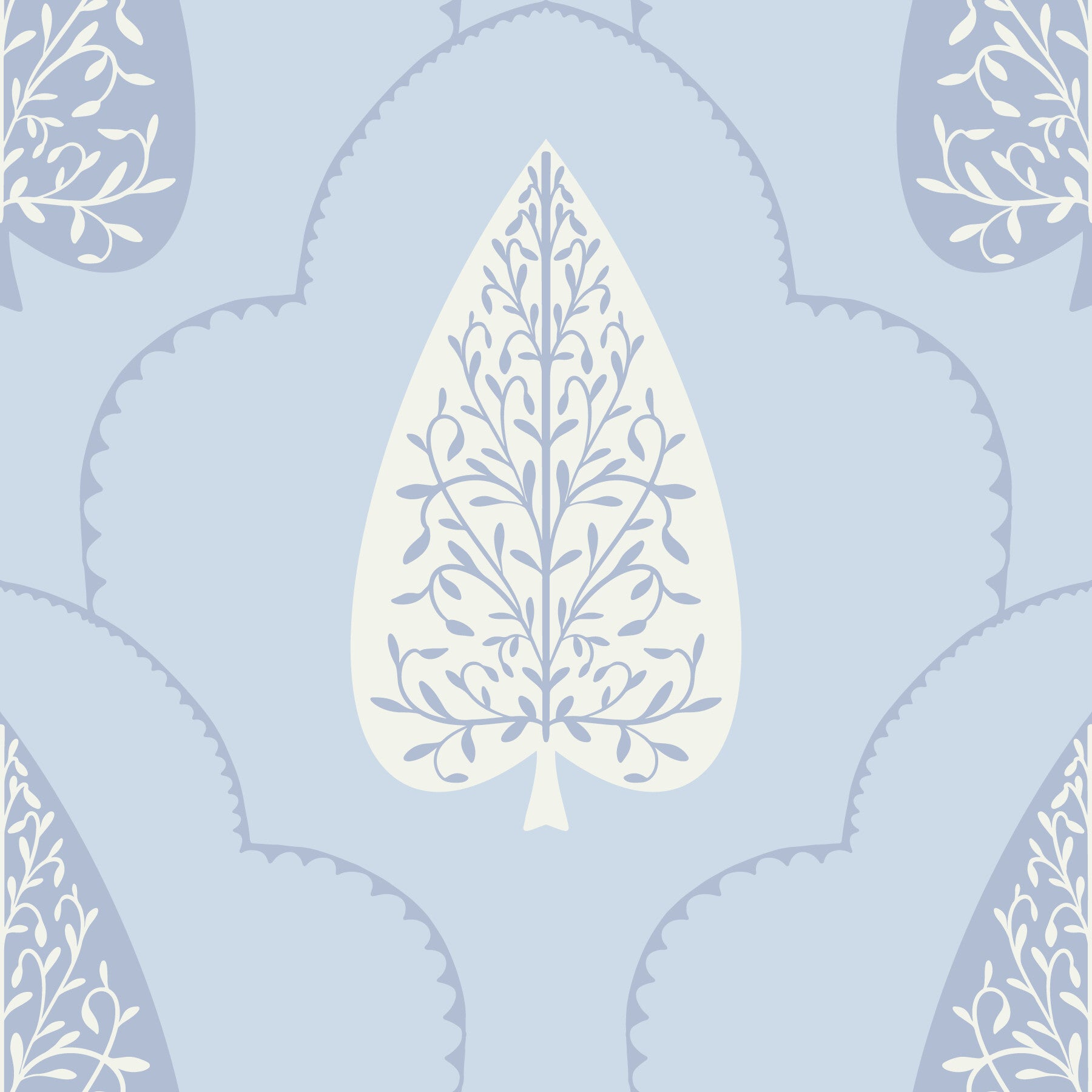 Soft sky blue foliage wallpaper, detailed tree of life motif, Arbor Branch Harmony.