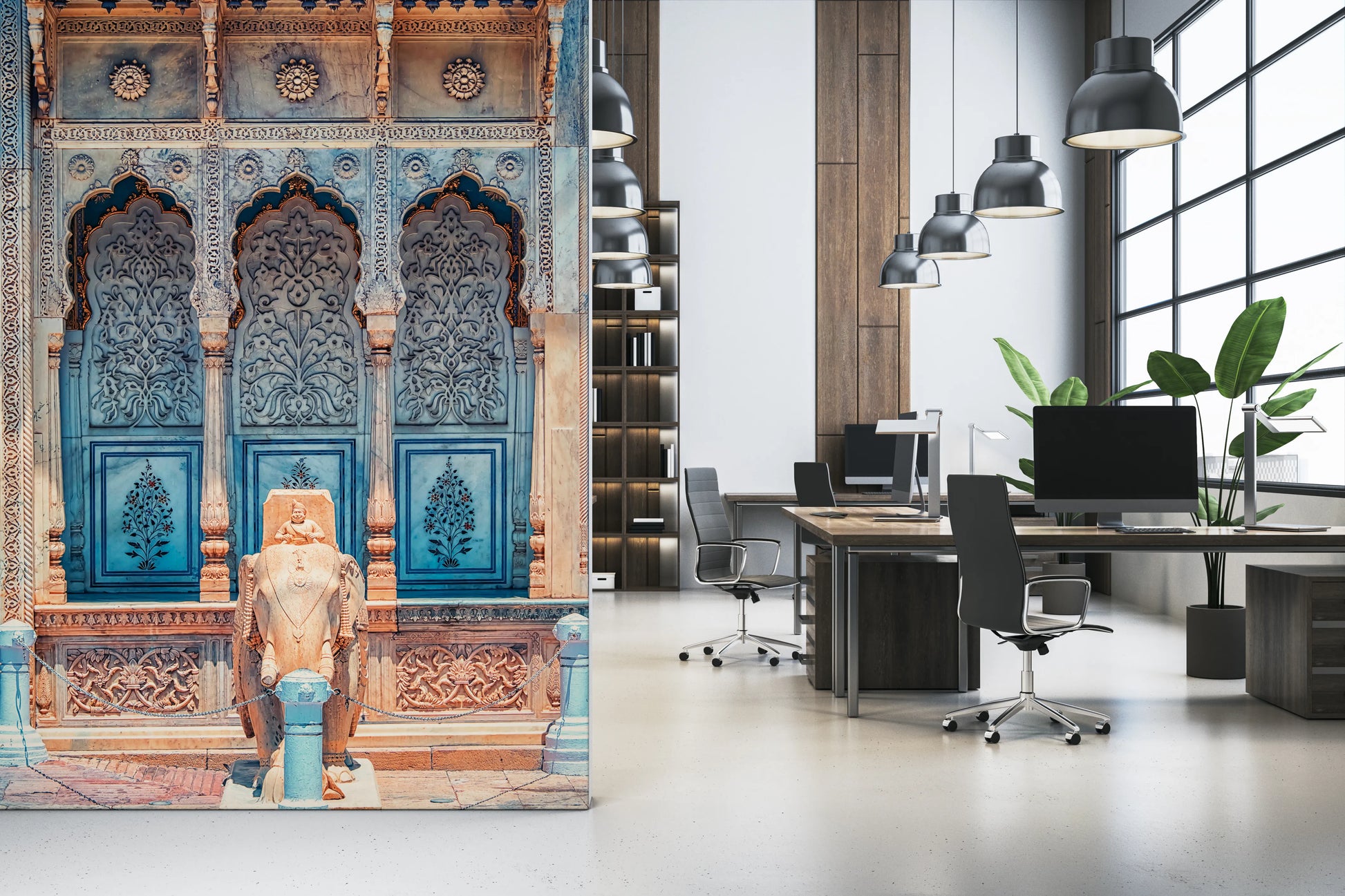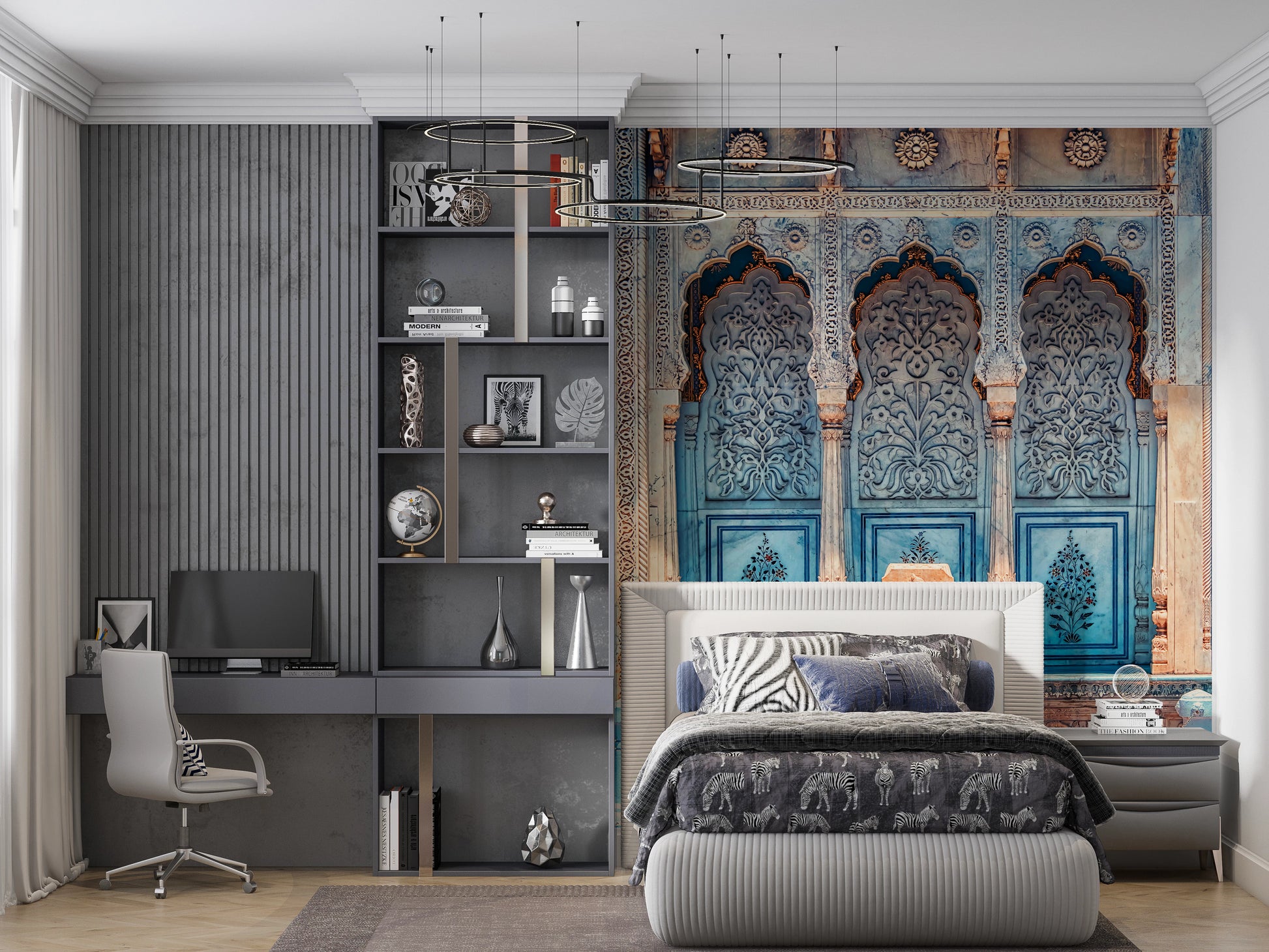 Introduce timeless beauty with our Archway Blossom wallpaper for walls. Featuring carved archways and intricate floral details, this design creates a sense of grand elegance. A muted palette of blue and beige enhances the sophisticated feel, ideal for a formal dining room, a serene bedroom, or an impressive entryway. Bring a touch of old-world charm to your home with this wallpaper. The intricate designs complements and elevates your interior spaces with a sophisticated touch.