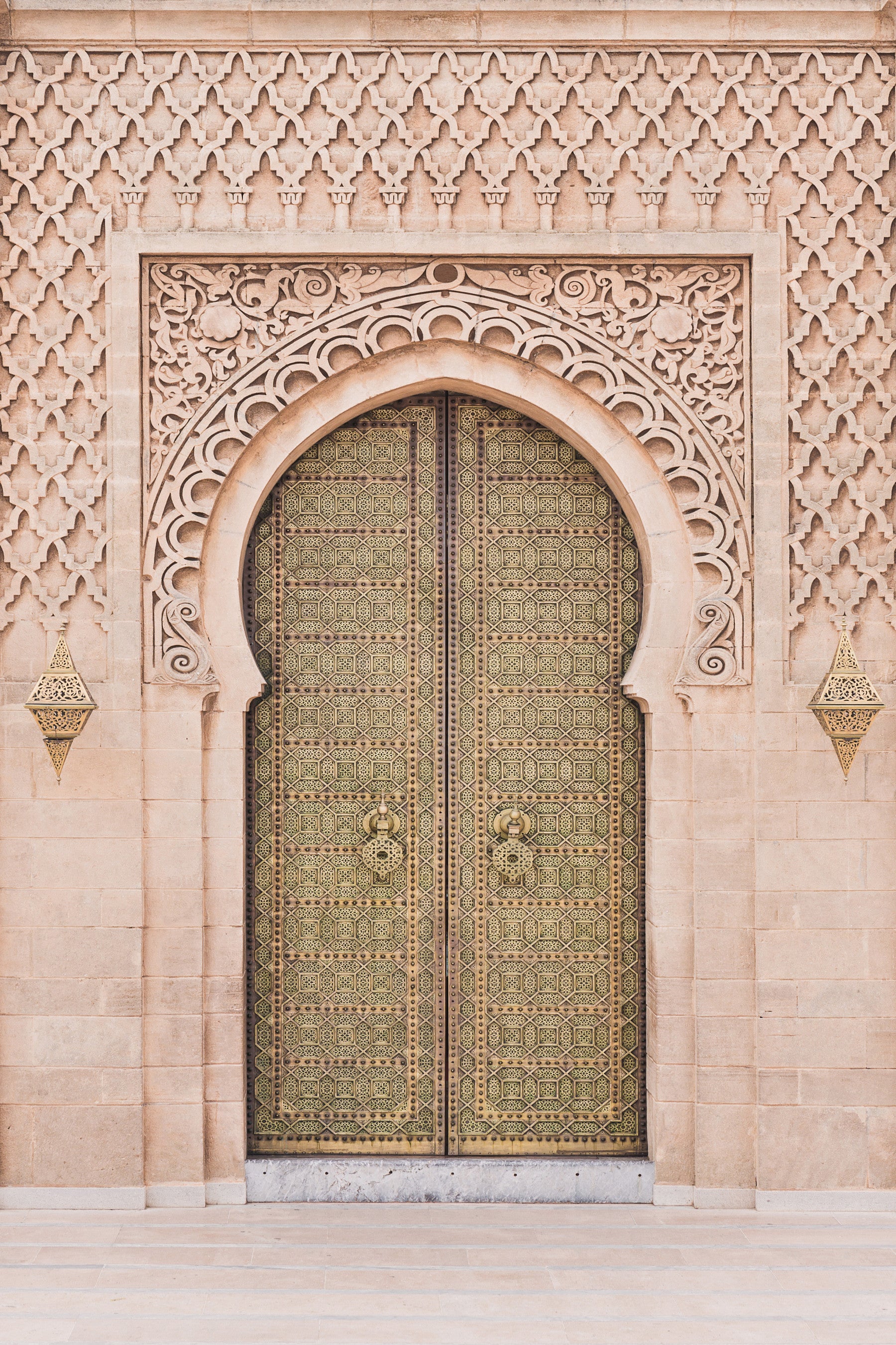 Transform your space with this opulent wallpaper. The detailed golden doors and peach-colored stonework create a sense of timeless beauty. Notice the intricate patterns that grace the archway and the geometric designs that adorn the doors, adding layers of visual interest. Perfect for creating a feature wall in your living room, bedroom, or study. This wallpaper for walls enhances interiors with a touch of historical elegance and architectural detail. Bring a touch of the exotic and sophisticated to your home.