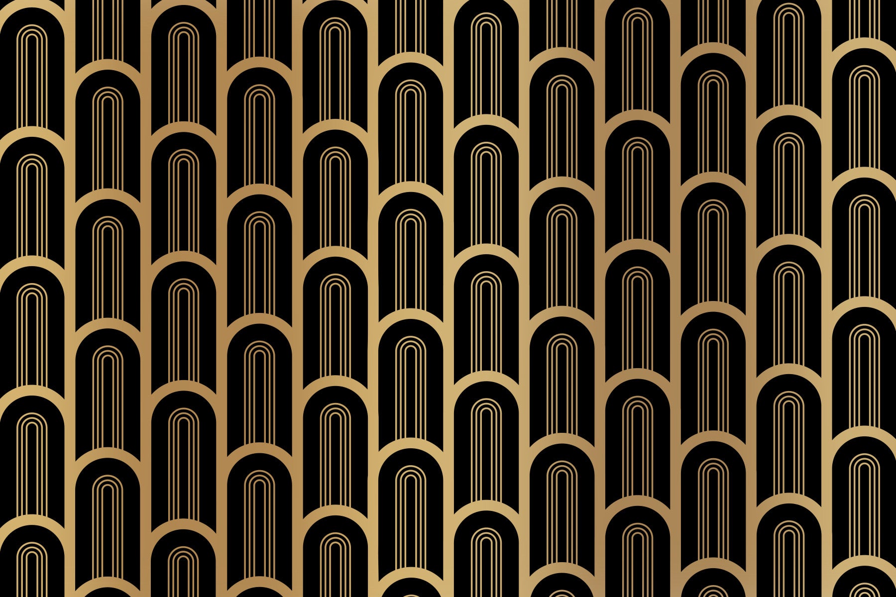 Art Deco Wall Mural with black and gold repeating column pattern.
