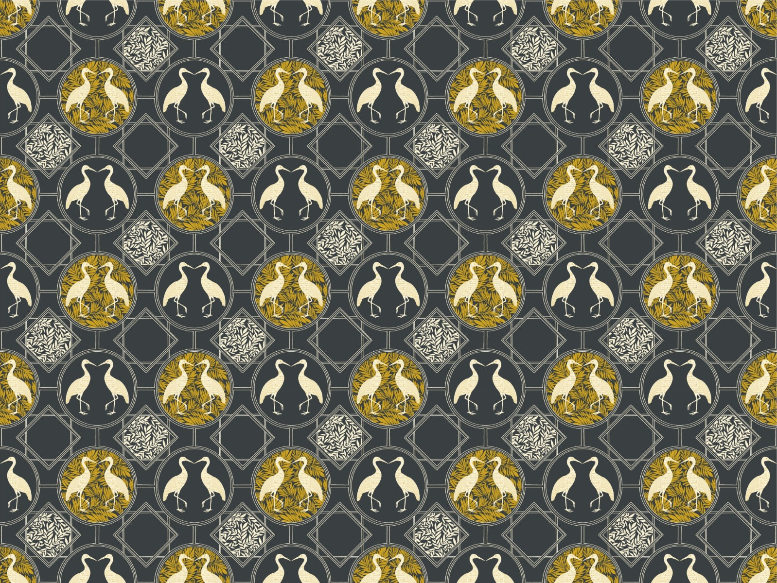 Sophisticated heron art deco wallpaper design