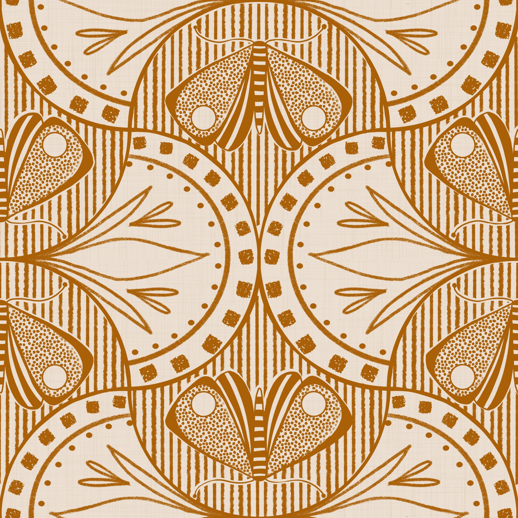 Art Nouveau Butterfly Floral in Cream Burnt Orange wallpaper subtle pattern.