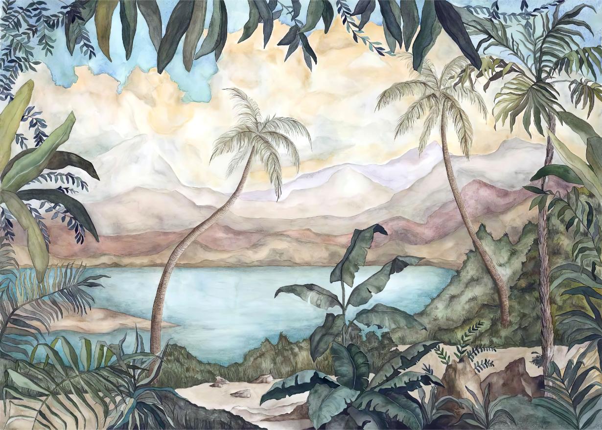 Transform any room into a serene oasis with our green pond tropical oasis wallpaper mural. Inspired by the beauty of nature, this mural feature lush greenery and tranquil waters, set against a backdrop of distant grey mountains. Its light dusky colors blend harmoniously, creating an artistic impression that captivates at first sight. Ideal for living rooms, dining areas, and bedrooms, this artistic wallpaper offers a fresh, breathy atmosphere, enhancing the ambiance of your space. Combine it with real potted plants for an even more immersive experience. As one of our bestsellers, the 'Green Pond' mural promises to be a lasting addition to your home, offering a unique space where family and guests can gather and relax. Embrace the beauty of nature with this exquisite, vegetation-based wallpaper mural.