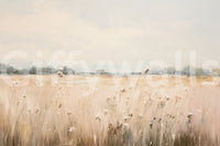 Embrace the serene beauty of August with this captivating wallpaper. A dreamy landscape unfolds, painted in soft, muted tones of beige and grey. Delicate wildflowers punctuate a field of tall grasses, stretching towards a hazy horizon where a distant line of trees softly silhouettes against a pale sky. The visible brushstrokes add texture and depth, creating a tranquil and impressionistic scene that perfectly captures the languid mood of a late summer day. This artwork evokes feelings of peace and quiet contemplation, making it the ideal backdrop for a calming digital workspace or home screen.
