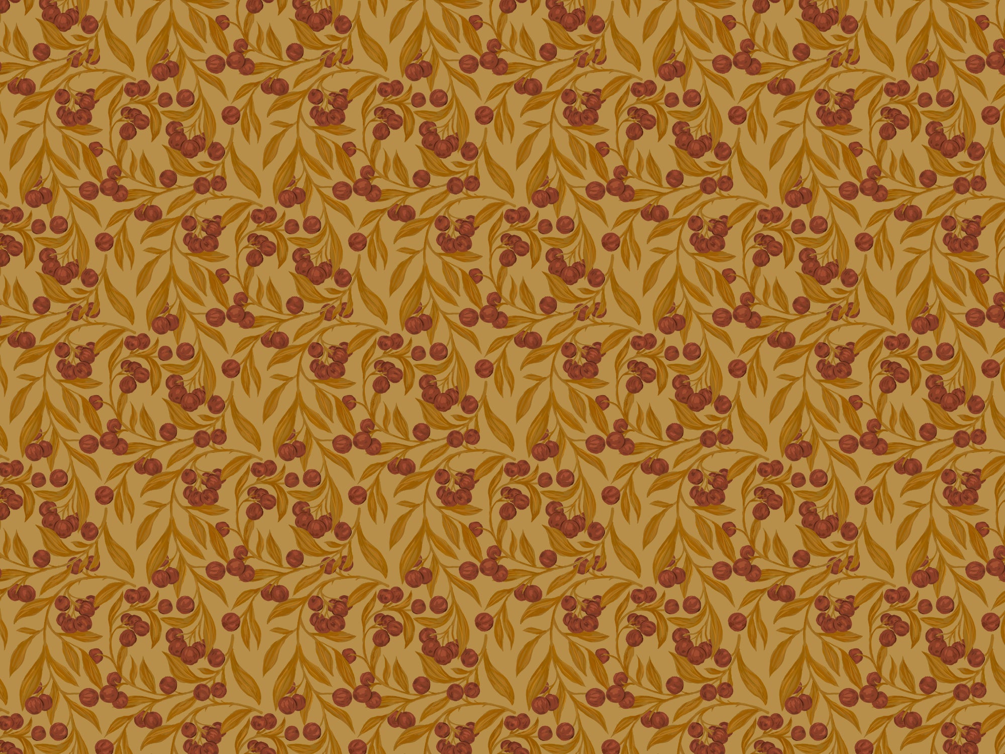 Nature-inspired red wallpaper with autumn berries for warmth.