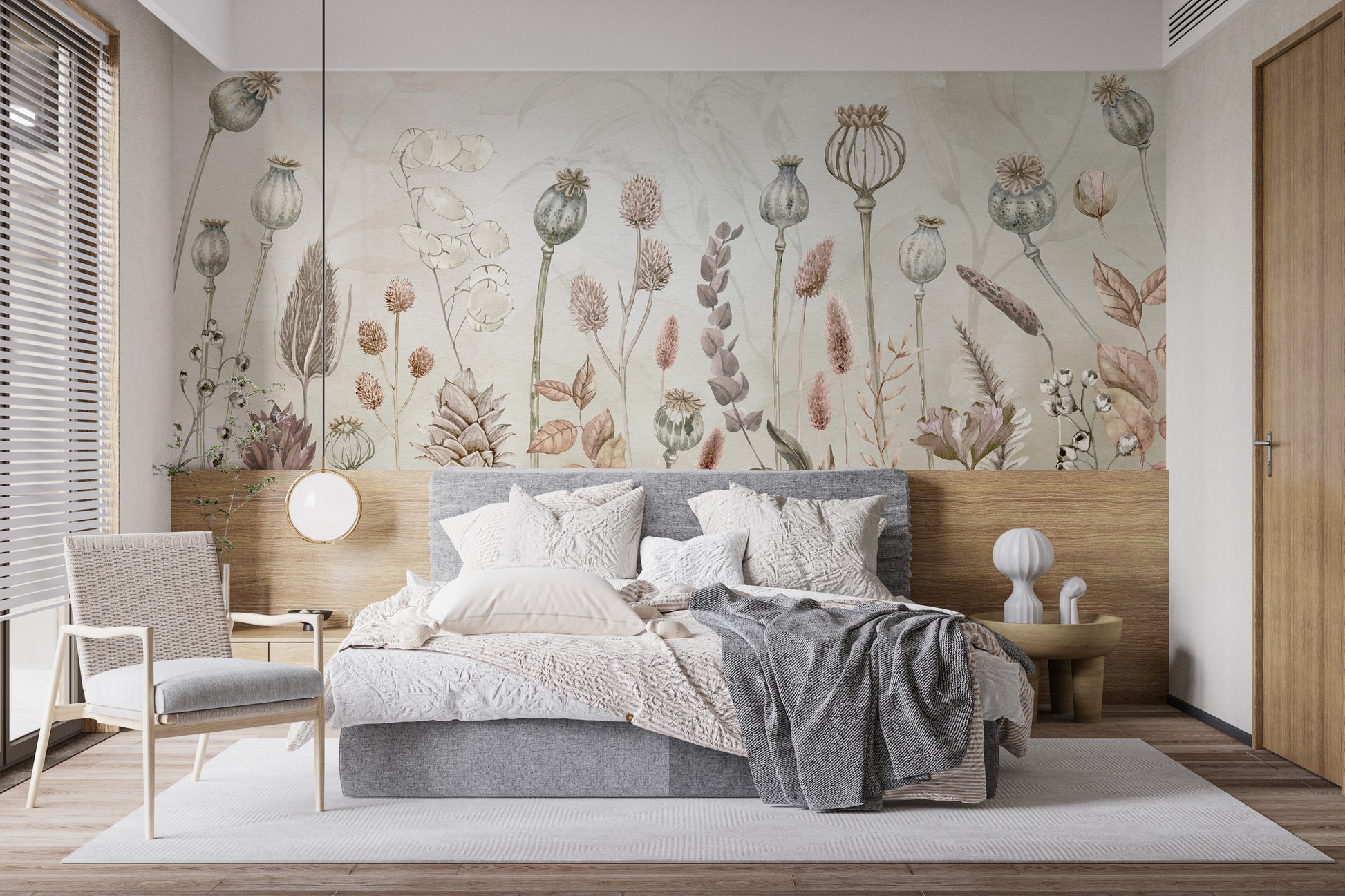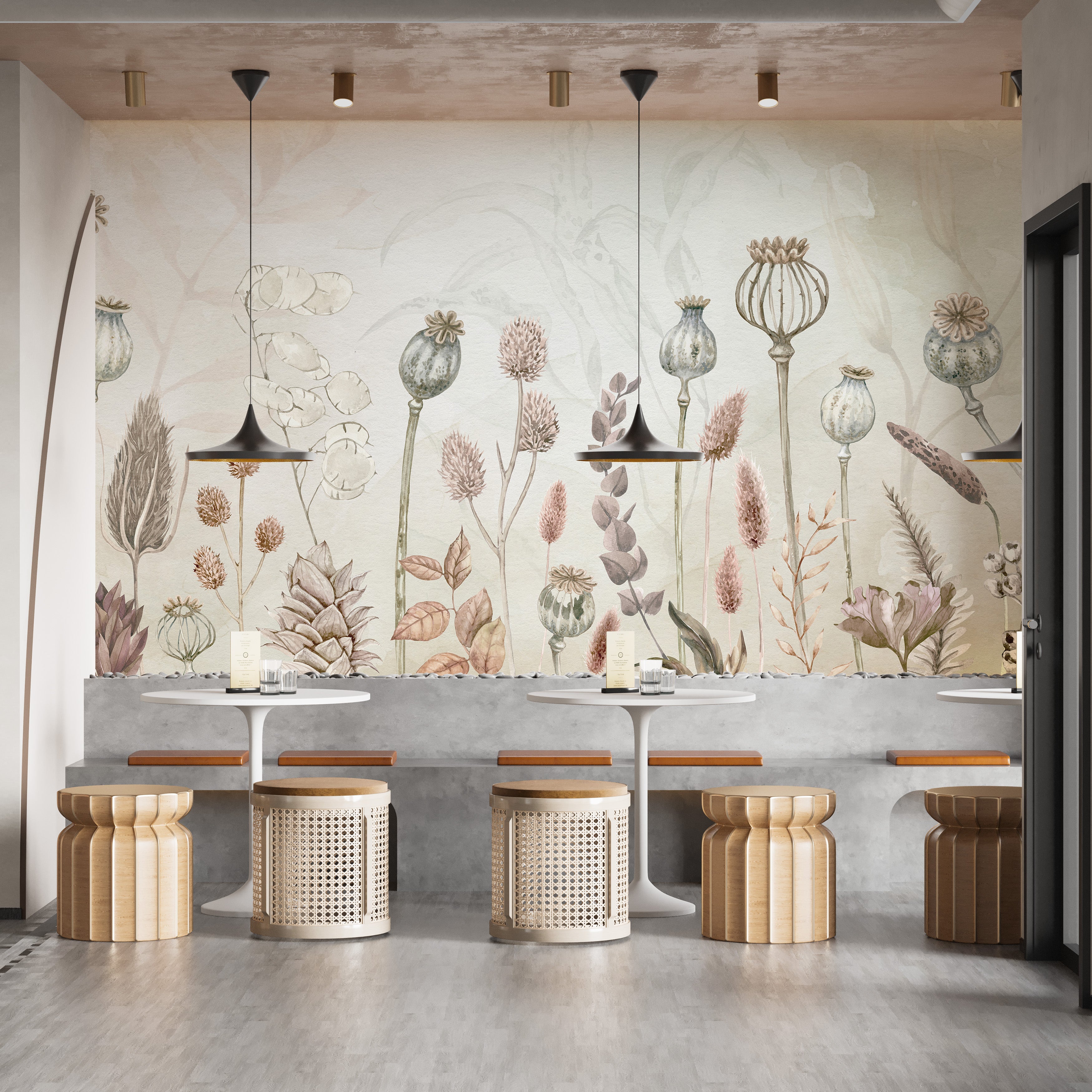 Vibrant autumn floral wall mural design