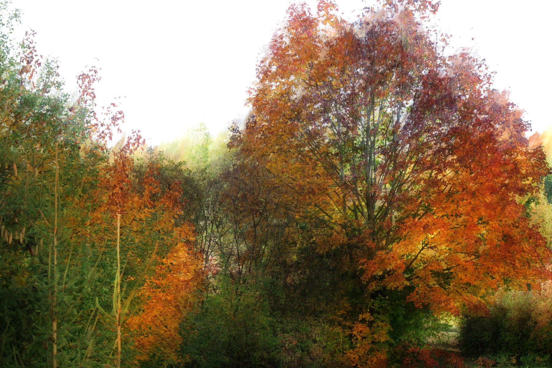 This stunning art print presents a vibrant display of autumn foliage, showcasing the rich hues of fall. The intricate details of the trees reveal a captivating blend of colours, from deep oranges to lush greens, creating a serene atmosphere. Perfect for nature lovers, this piece adds a touch of seasonal beauty to any space.