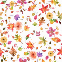 Embrace the vibrant hues of autumn with this captivating wallpaper. A delightful array of watercolor leaves in warm reds, oranges, and yellows dance alongside delicate, multicolored flowers. Acorn details and berry sprigs add a touch of woodland charm, creating a whimsical and enchanting scene. Perfect for adding a touch of autumnal magic to your digital devices, this design offers a cheerful and vibrant celebration of the season's beauty. The seamless pattern ensures a beautiful and consistent display across all screen sizes.