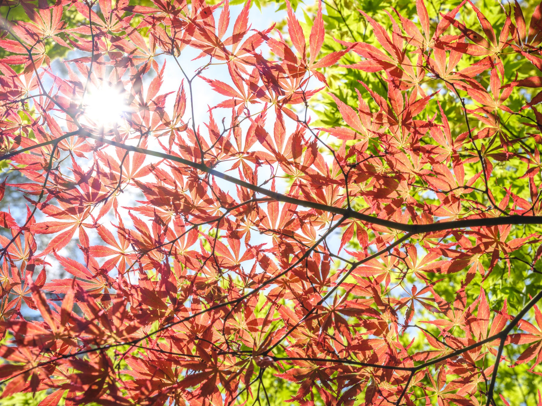 Our Autumn Leaves Wall Mural gives your home a feeling of vibrant beauty and natural wonder. This wall mural features a close-up view of bright red and green autumn leaves, with the sun gently filtering through them. The dynamic colors and clear sky create a cheerful and inviting backdrop, perfect for a living room, dining room, or study. This high-quality wallpaper for walls is durable and easy to install, making it a simple way to get a classic, high-end look with a touch of peaceful charm.