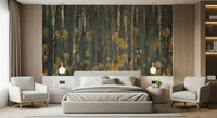 Transform your home with this serene wallpaper for walls, depicting an abstract forest scene. See tree trunks reach upwards. Fallen leaves in warm shades of yellow and brown add a touch of autumnal charm. Ideal for creating a calm and peaceful mood in your living room, bedroom, or hallway, this design pairs nicely with minimalist or rustic decor. The pattern offers visual interest without overwhelming the space.