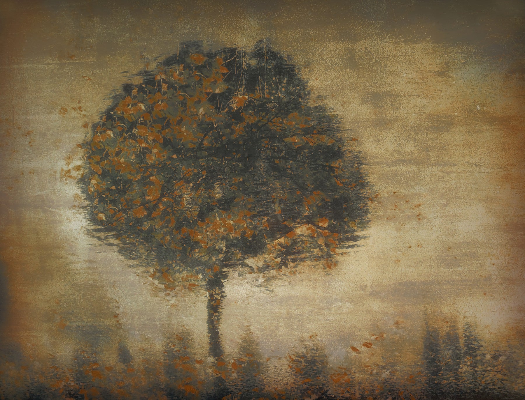 Transform your living space with this captivating wallpaper for walls. It features a lone tree with hues of autumn, set against a muted backdrop. The design evokes a sense of tranquility and natural beauty. Its rustic charm complements interiors aiming for a nature-inspired aesthetic. The warm tones create a cosy ambiance, perfect for spaces that need a touch of organic sophistication. It works exceptionally well in living rooms, bedrooms, or studies, adding a focal point that is both timeless and elegant.