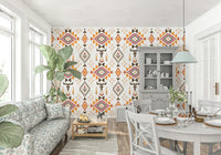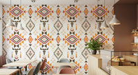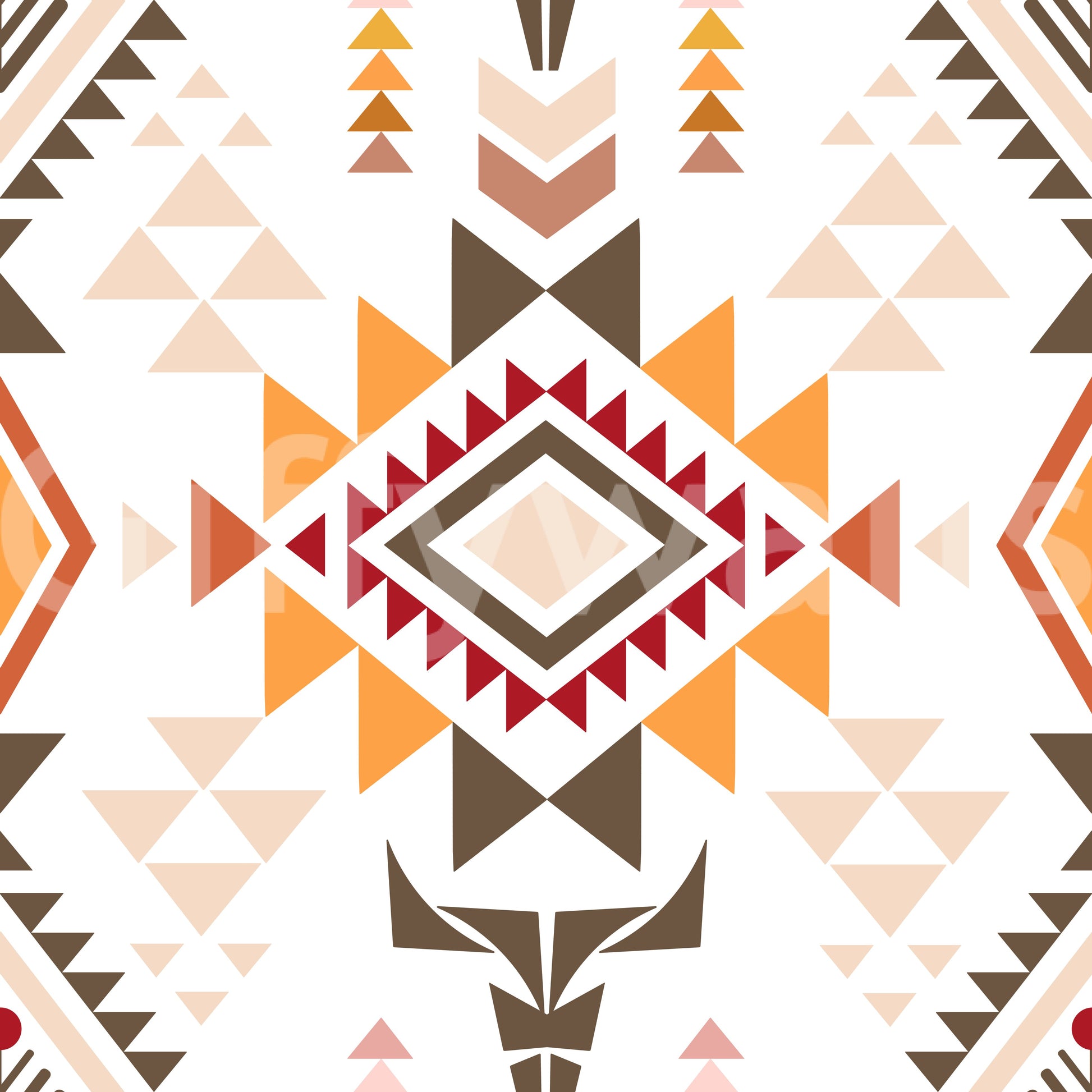 Elevate your interior with this striking wallpaper for walls, featuring a contemporary take on traditional Aztec patterns. The intricate design uses a range of triangles and diamonds, creating visual depth and texture. Warm shades of burnt orange, tan and cream interplay, offering a sophisticated and grounded ambience. This wallpaper enhances spaces like living rooms, studies, or even a cosy reading nook. The pattern brings cultural richness and artistic flair, blending seamlessly with both modern and rustic décor styles.