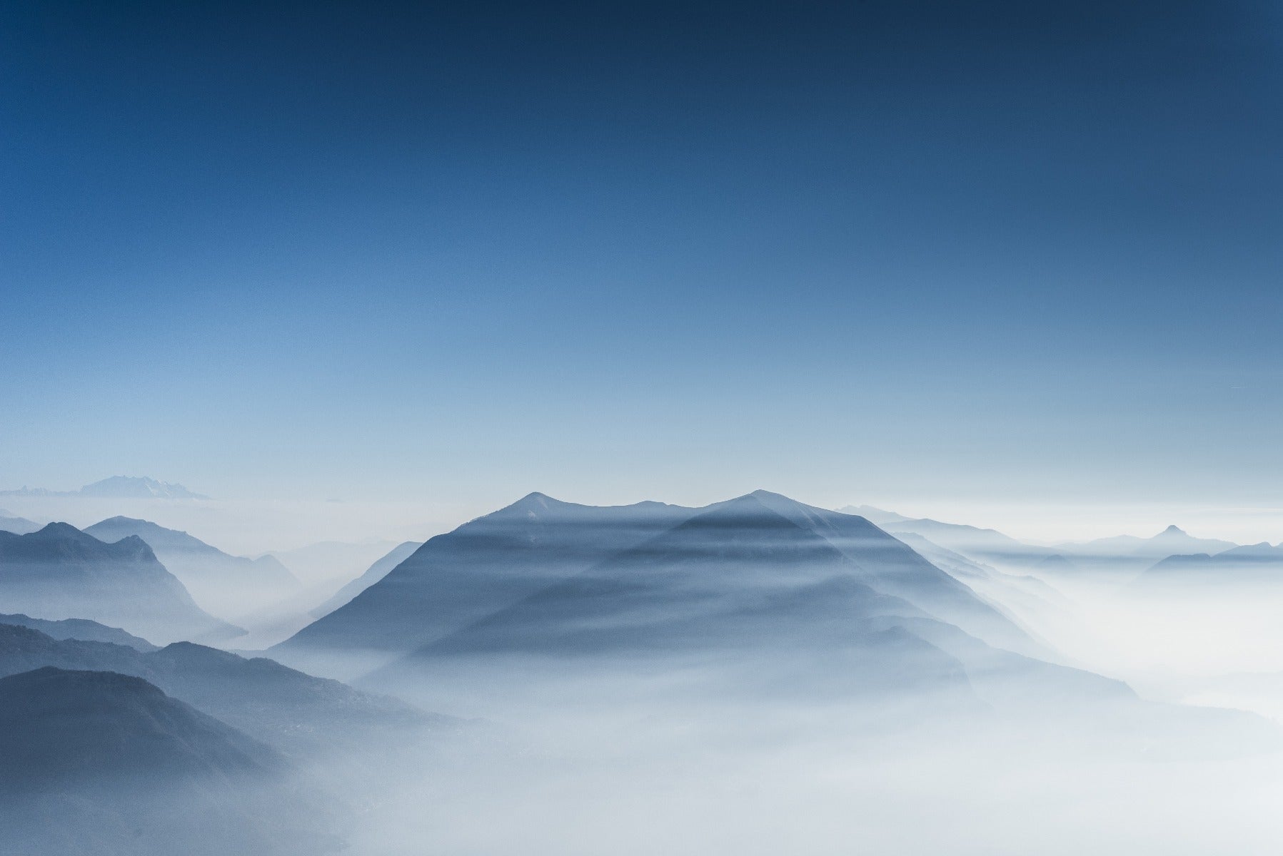 Scenic wallpaper mural featuring azure hilltops and soft skies.