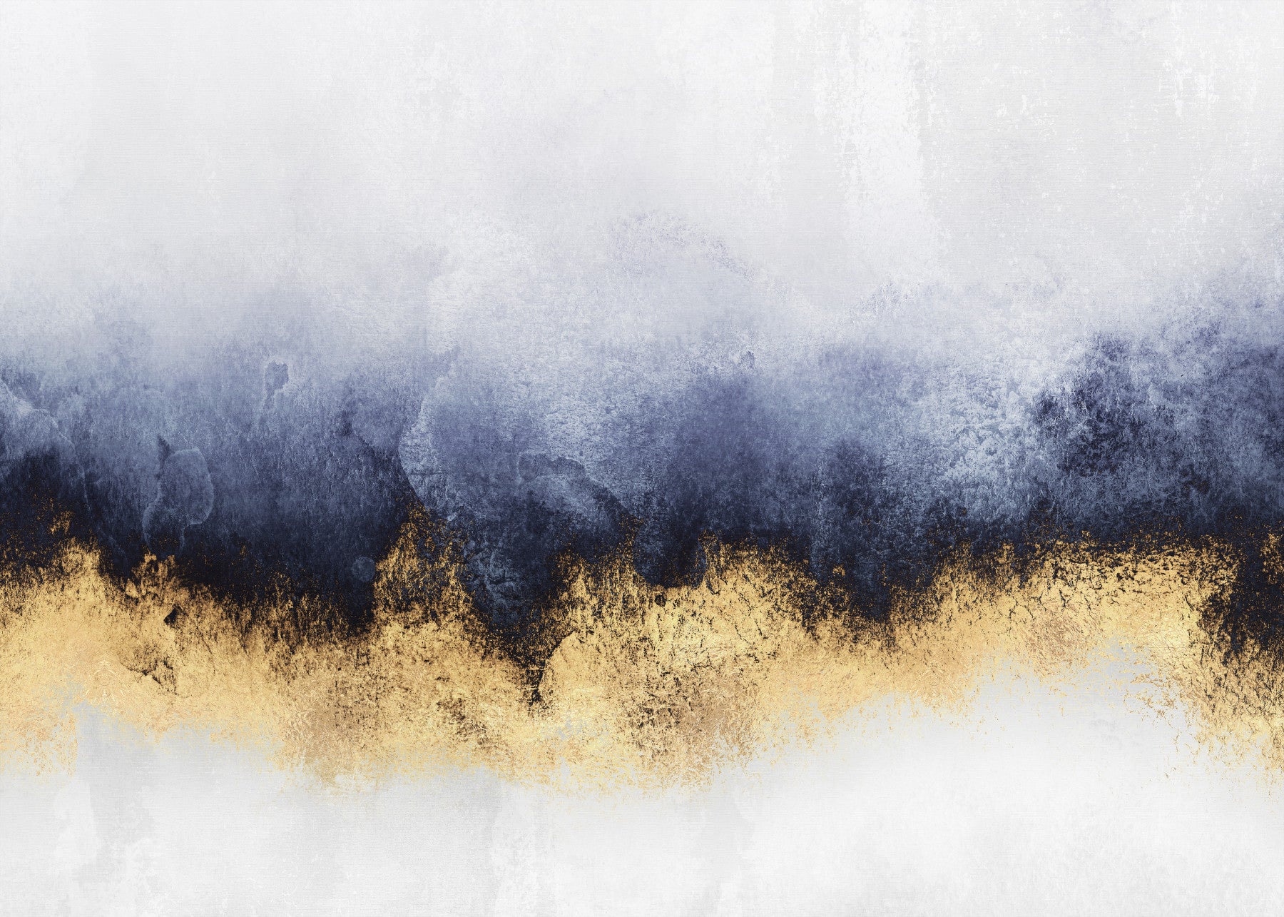 A beautiful abstract gold and azure wallpaper mural for a modern home.