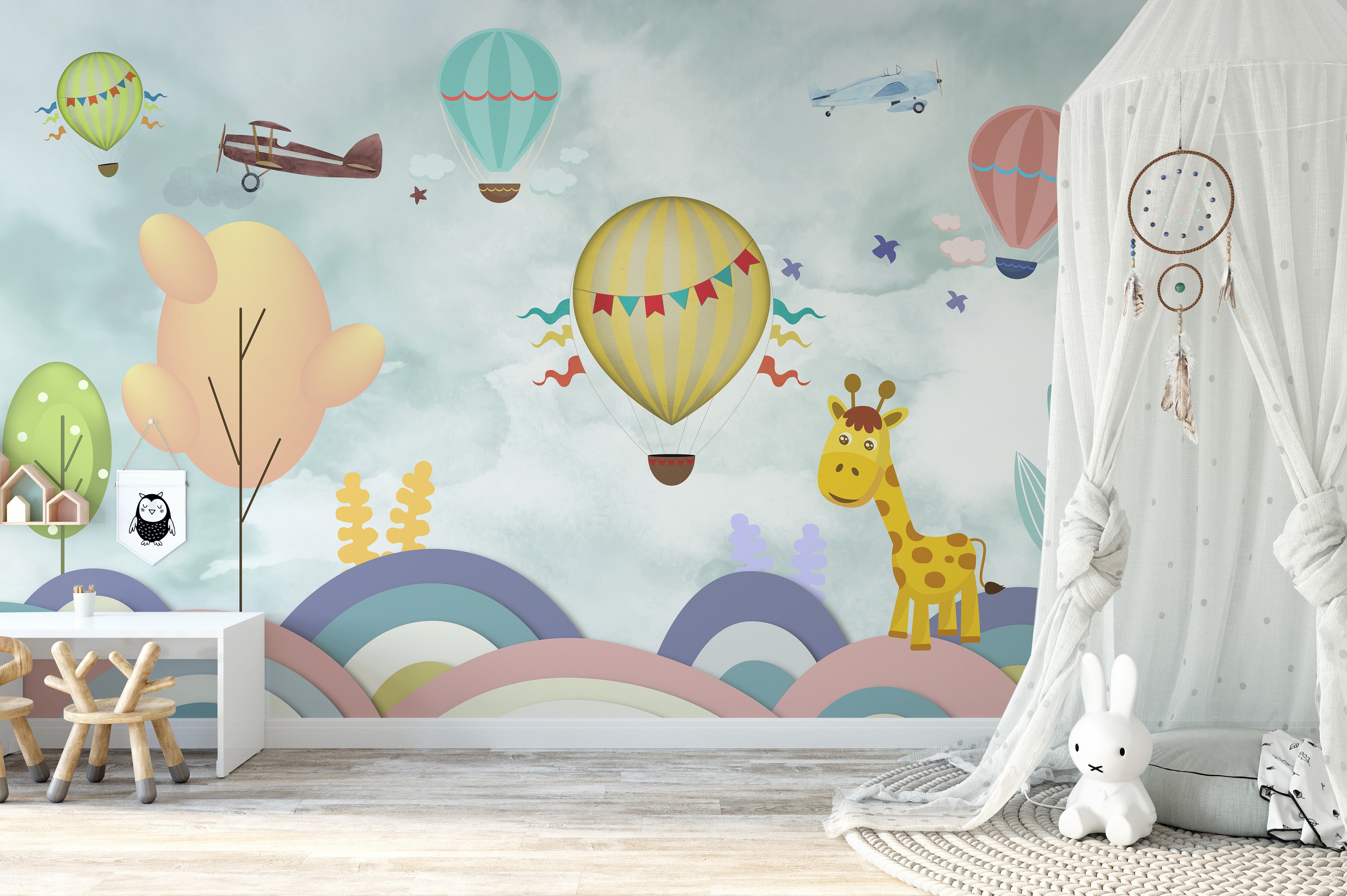 Hot Air Balloon Cartoon Kids Room Wallpaper Mural