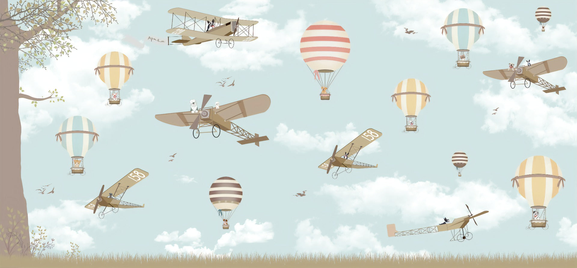 Hot Air Balloons & Planes Fun land Wallpaper Murals