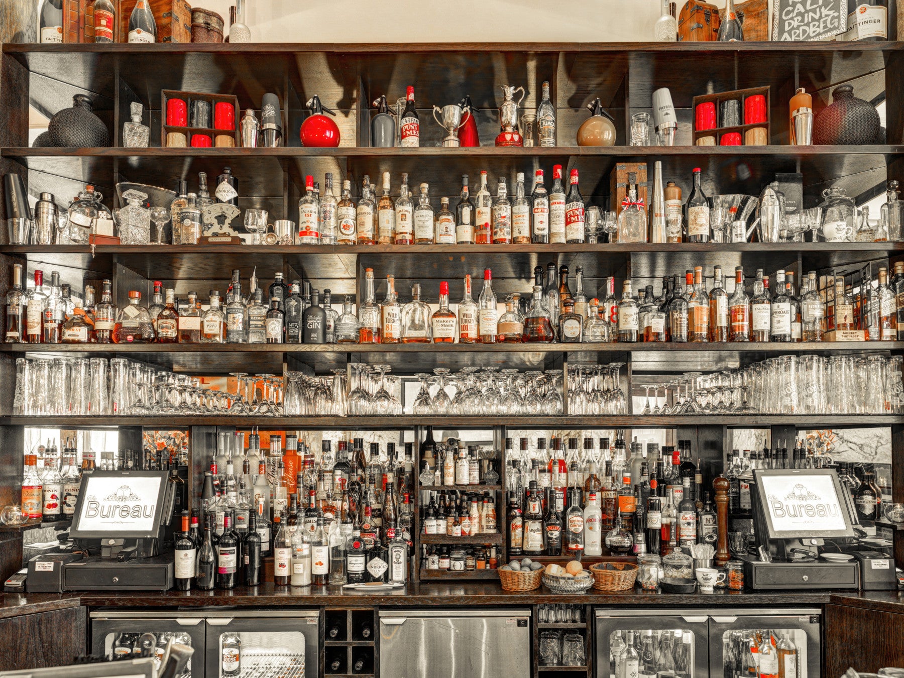 Transform your space with this Bar Brilliance Wall Mural. A tapestry of bottles and glasses creates a luxurious, layered design. The deep wood tones and hints of red bring warmth to any room. Install this wallpaper for walls in a dining area or den to enhance a relaxed ambiance. The detailed composition evokes a sense of sophistication and invites conversation. Perfect for adding character to hallways, kitchens, or living rooms, this wall covering provides a focal point that complements both modern and classic interiors. The unique design introduces depth and visual interest to every surface.