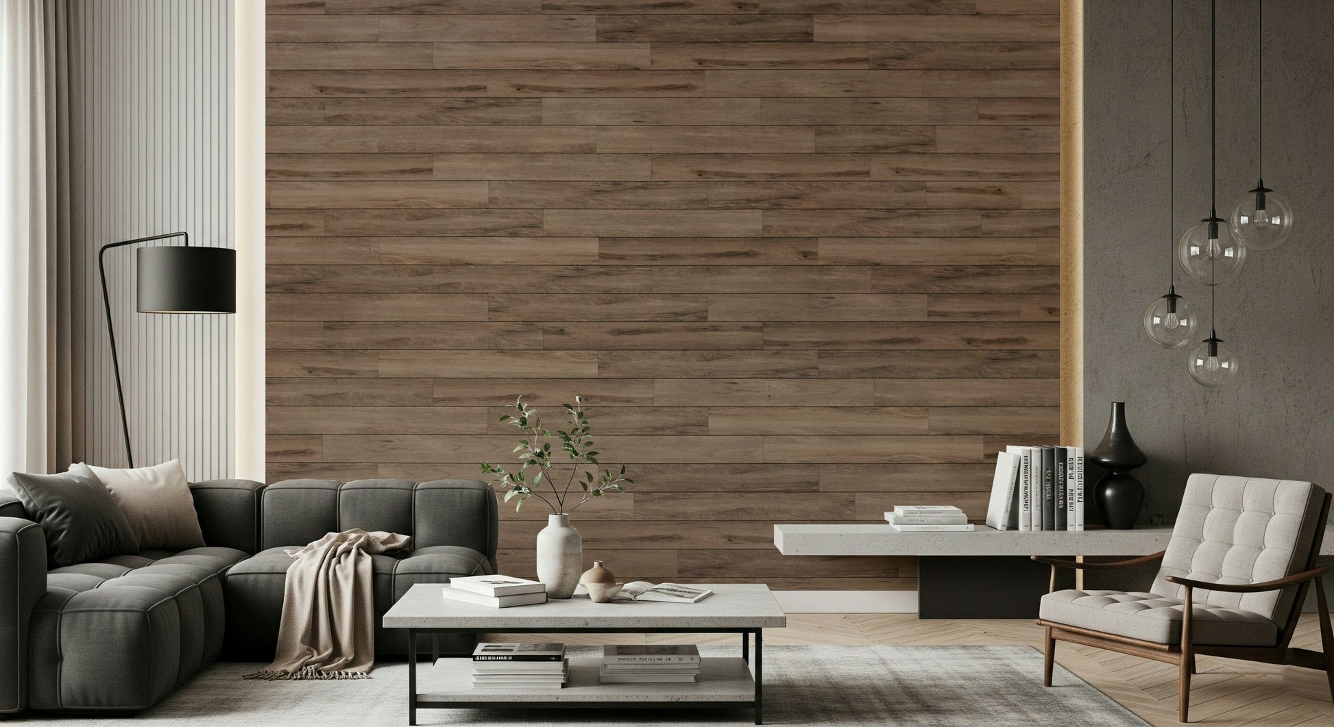 Create a cosy farmhouse vibe with this distressed barn wood effect. The varying shades of brown add visual interest and a sense of history to the space. This wallpaper for walls creates a welcoming atmosphere in entryways, bedrooms, or living spaces. Its simple, repeating pattern blends easily with various décor styles. It brings a touch of country charm into urban or suburban homes.