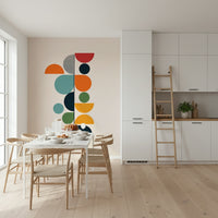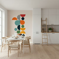 Embrace the essence of rejuvenation with 'Bauhaus - Spring', a striking geometric design that embodies the spirit of renewal. This composition of clean lines and bold circular forms captures the Bauhaus aesthetic with a touch of seasonal vibrancy. Hues of sunny orange, warm red, and earthy green are juxtaposed with calming teal and deep blues, evoking the awakening of nature. The deliberate arrangement of semi-circles and full circles creates a dynamic visual rhythm, drawing the eye upward, reminiscent of new growth reaching for the light. A subtle striped detail adds a layer of texture and visual interest to this modern piece. Bring the fresh, optimistic energy of spring into your living space with this unique wall décor, ideal for creating a focal point that is both timeless and contemporary.